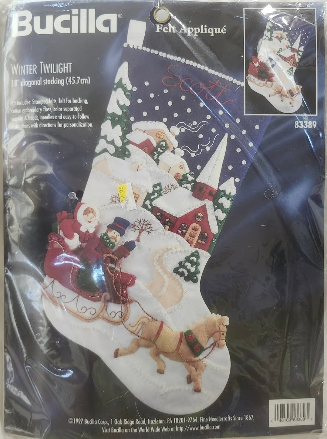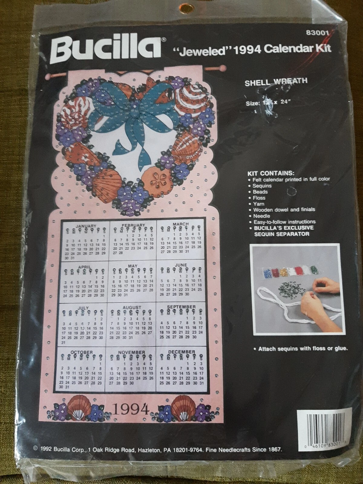 Bucilla Corp. address at the end of 1996 printed on kits: 1 Oak Ridge Road, Hazelton PA.