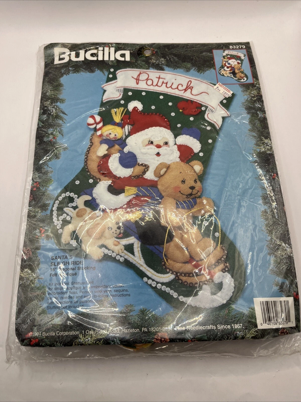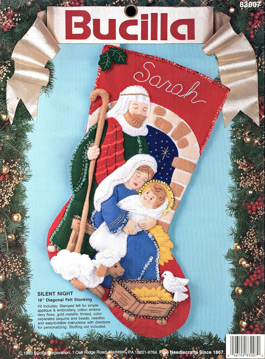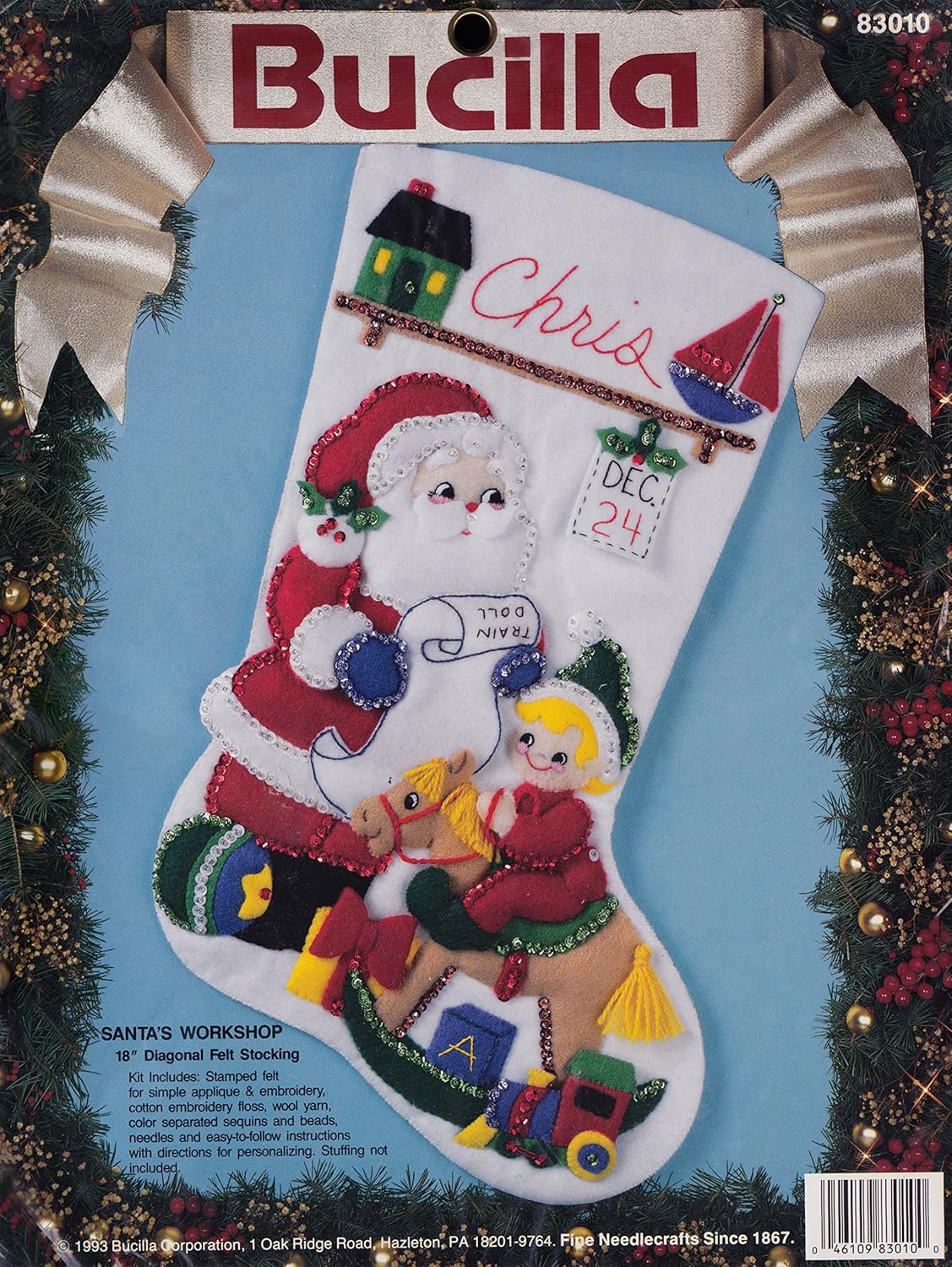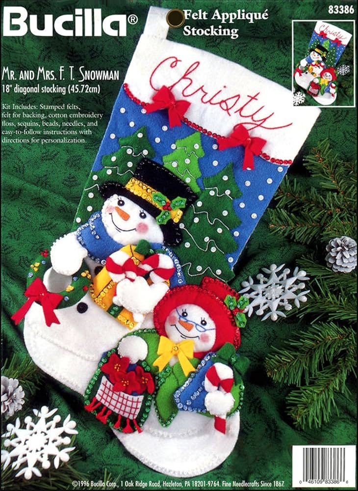 Merry Merry Christmas | 83606 | 1996? | 18″ | HeartFelt Holiday Creations Stocking kit. | ||