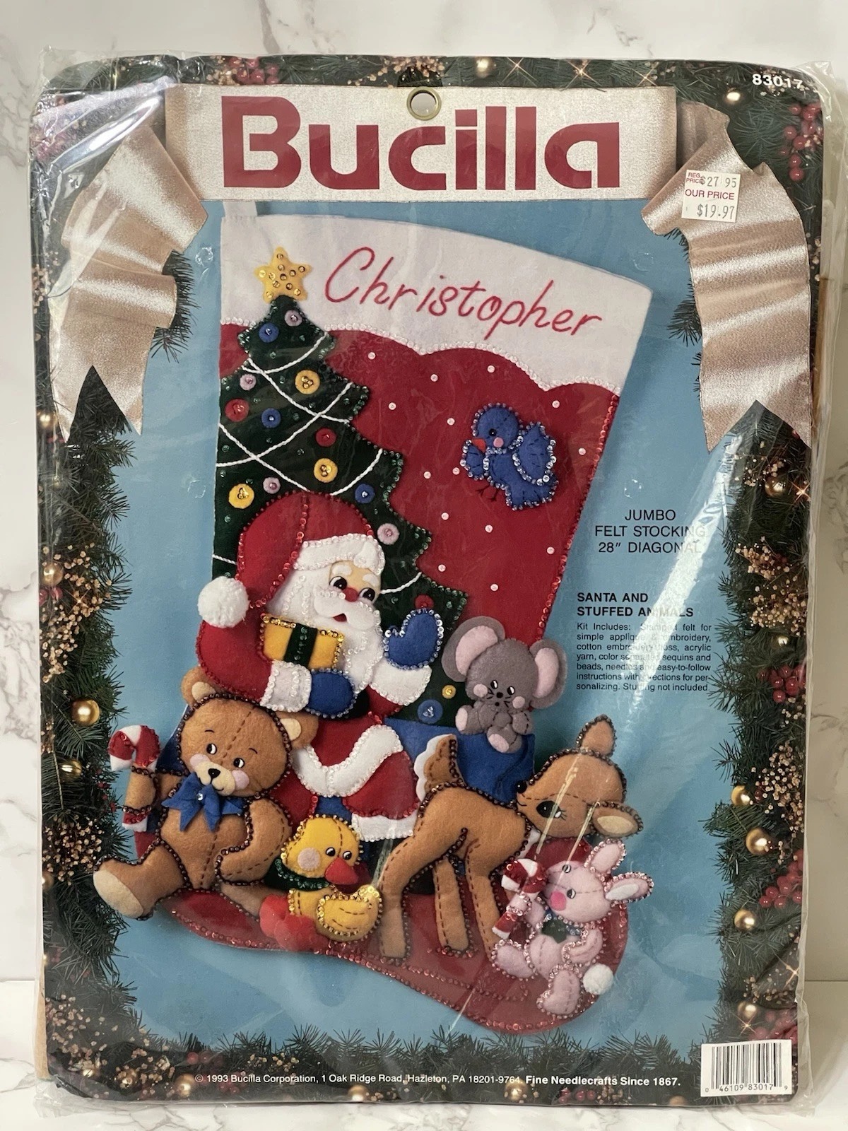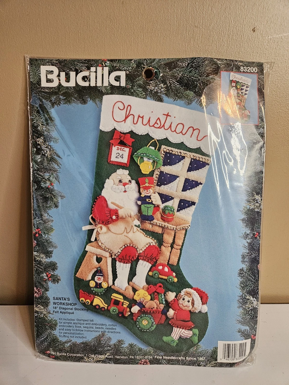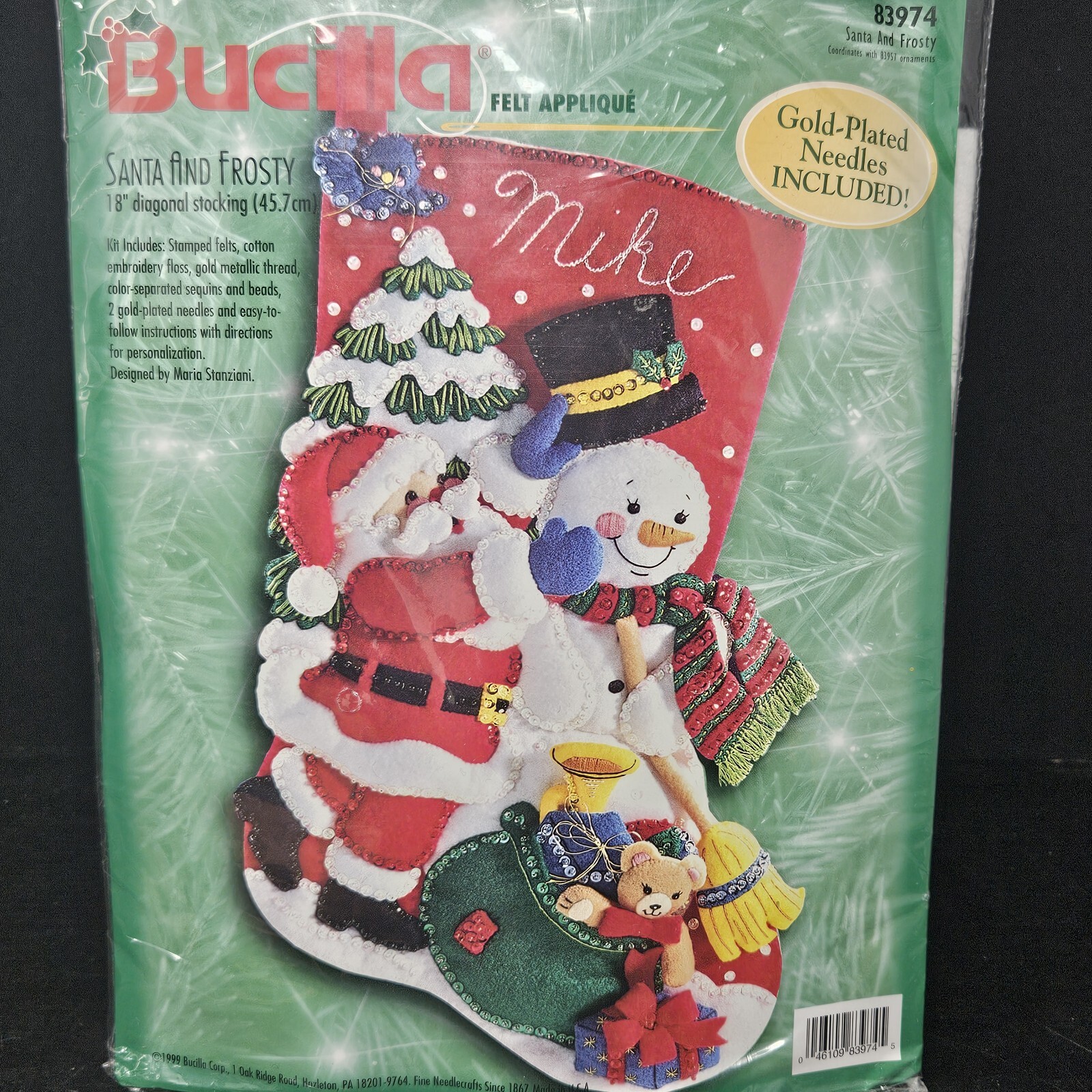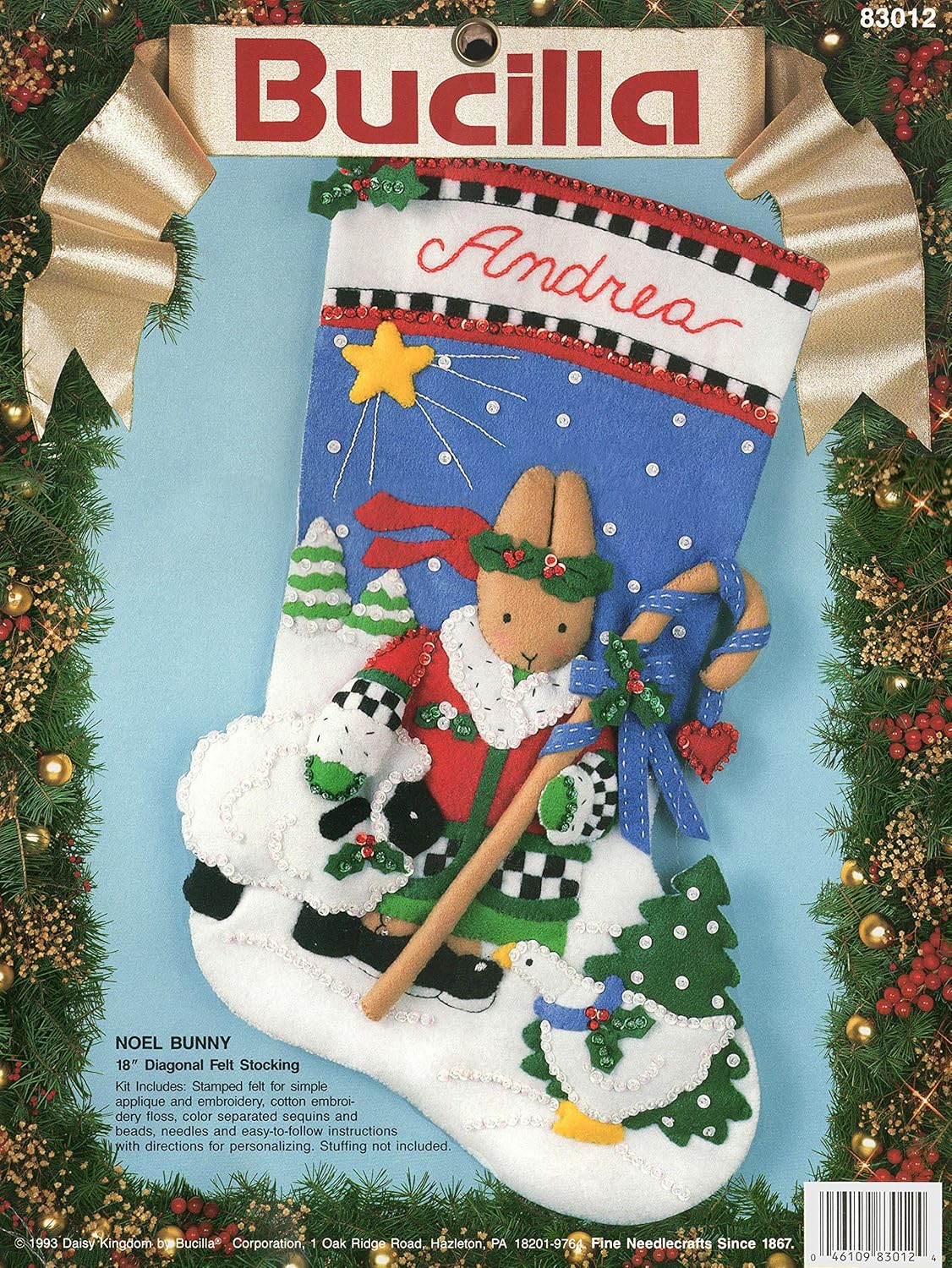 Merry Merry Christmas | 83606 | 1996? | 18″ | HeartFelt Holiday Creations Stocking kit. | ||