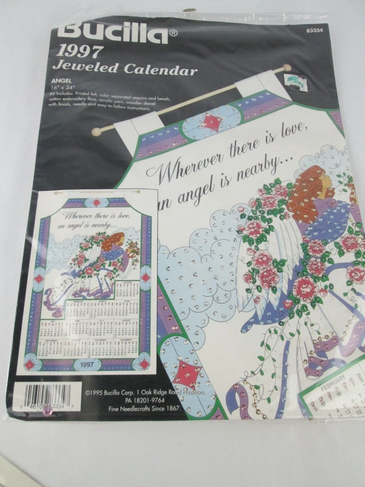 Angels | 83629 | 1996 | 16″ x 24″ | Jeweled Calendar Kit for 1998, published in 1996. | ||