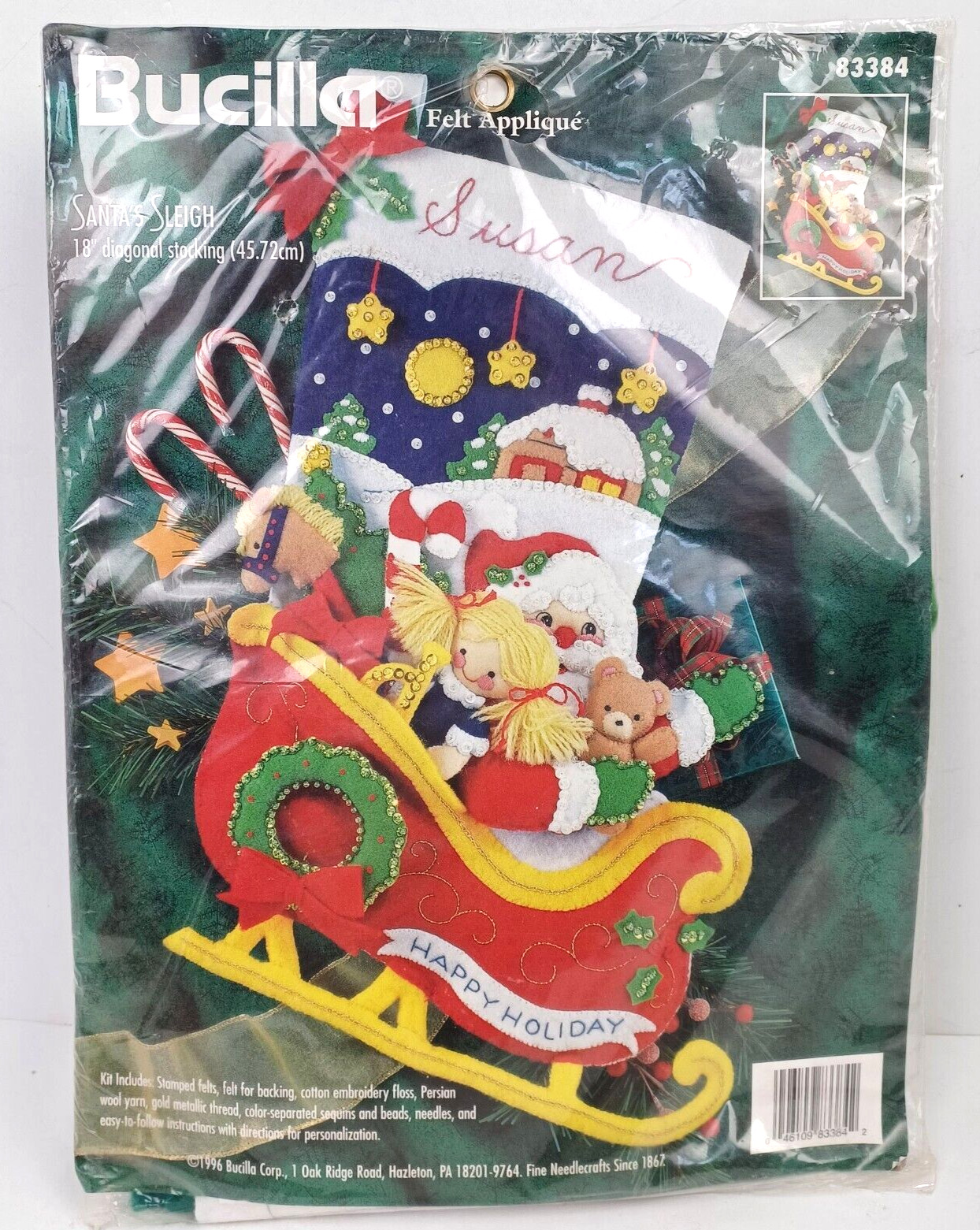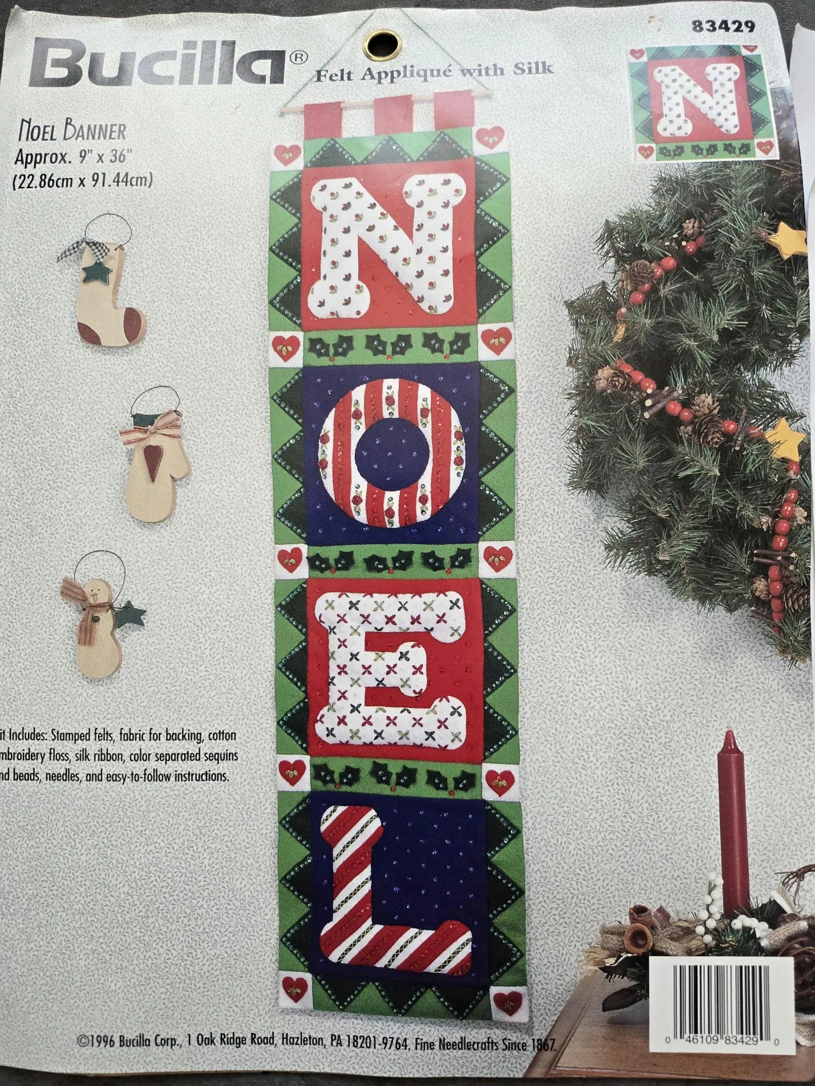 Decorate the Tree | 83509 | 1996 | 4×4 | 6 | Felt Ornament Kit with silk ribbons | |