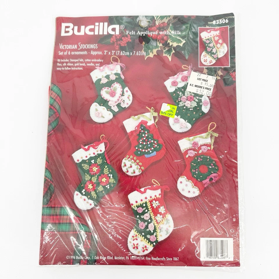 Victorian Stockings | 83506 | 1996 | Felt ornament kit with silk ribbons | |||