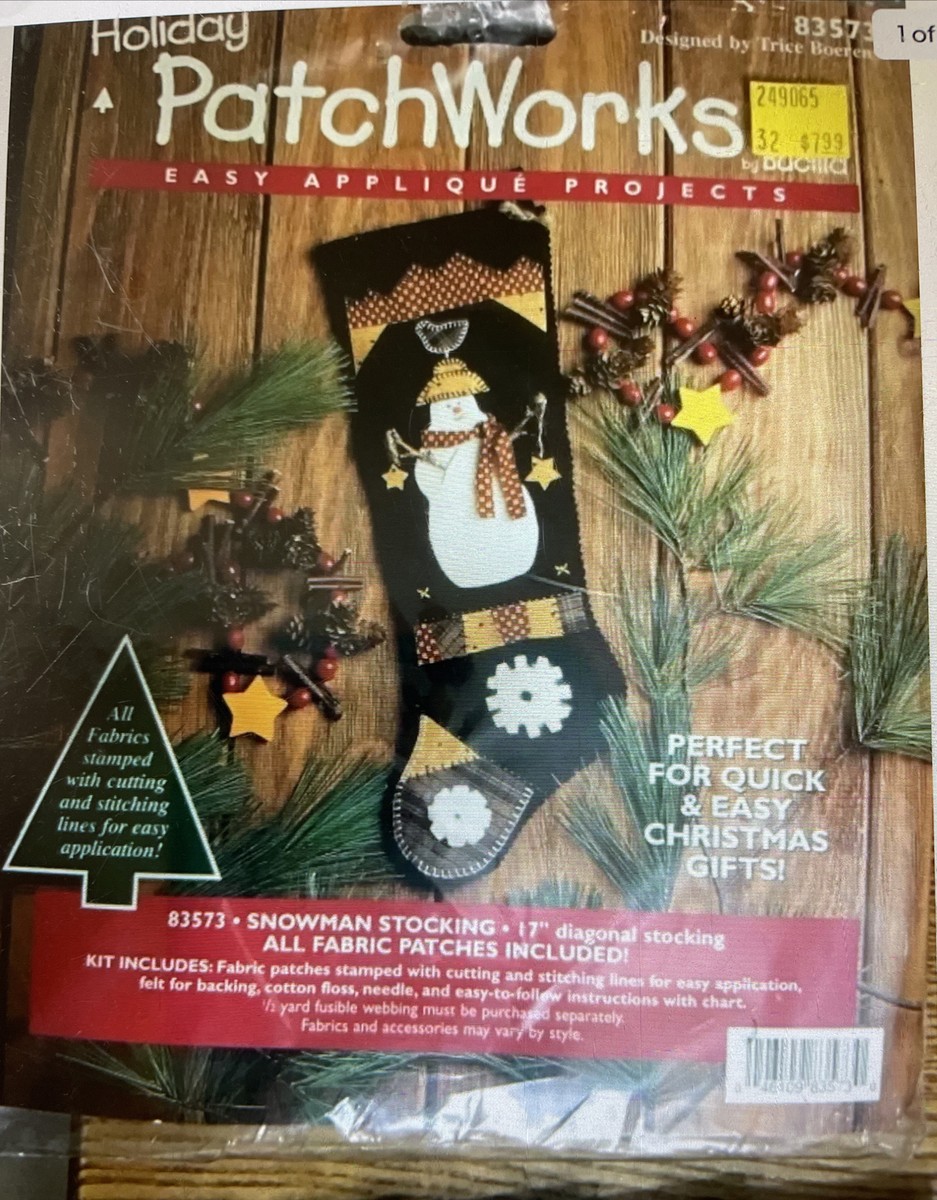 Snowman Stocking | 83573 | 1996? | 17″ | PatchWorks Fabric stocking | ||