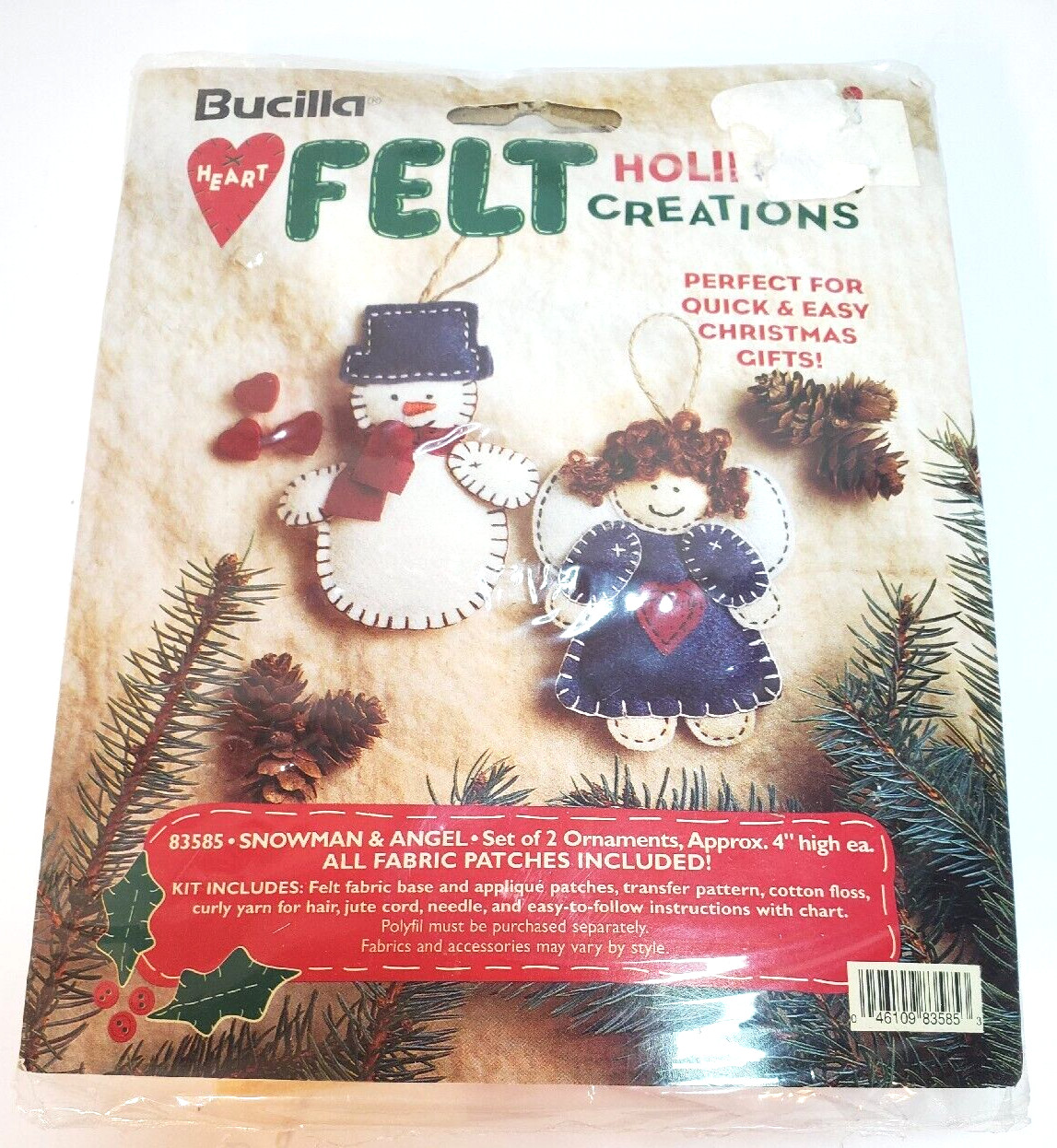 Snowman and Angel | 83585 | 1996? | 4″ | Set of 2 | Heart Felt Holiday Creations Felt Ornaments | |