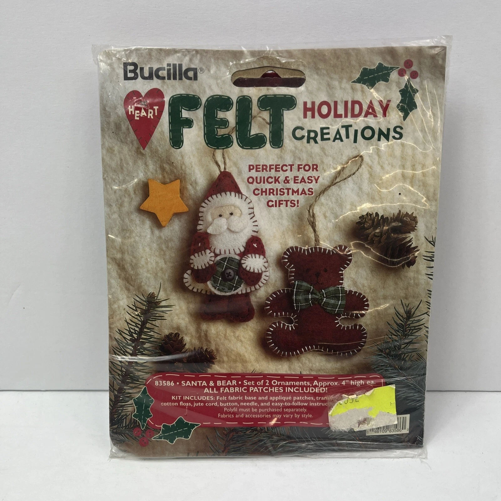 Santa & Bear | 83586 | 1996? | Set of 2 | Heart Felt Holiday Creations Felt Ornaments | ||