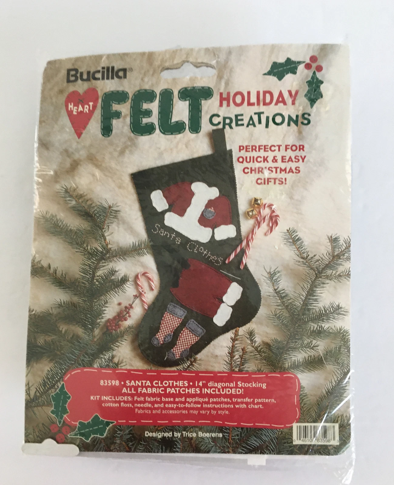 Santa Clothes | 83598 | 1996? | 14″ | Trice Boerens | Heartfelt holiday creations small stocking kit | |