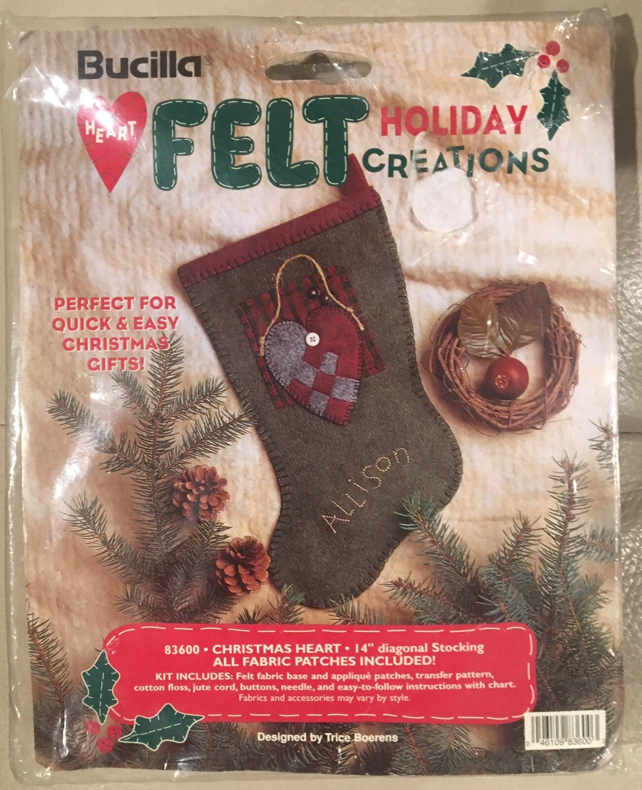 Home for the Holidays | 83596 | 1996? | 9x 9 | Trice Boerens | Heartfelt holiday creations felt pillow kit | |