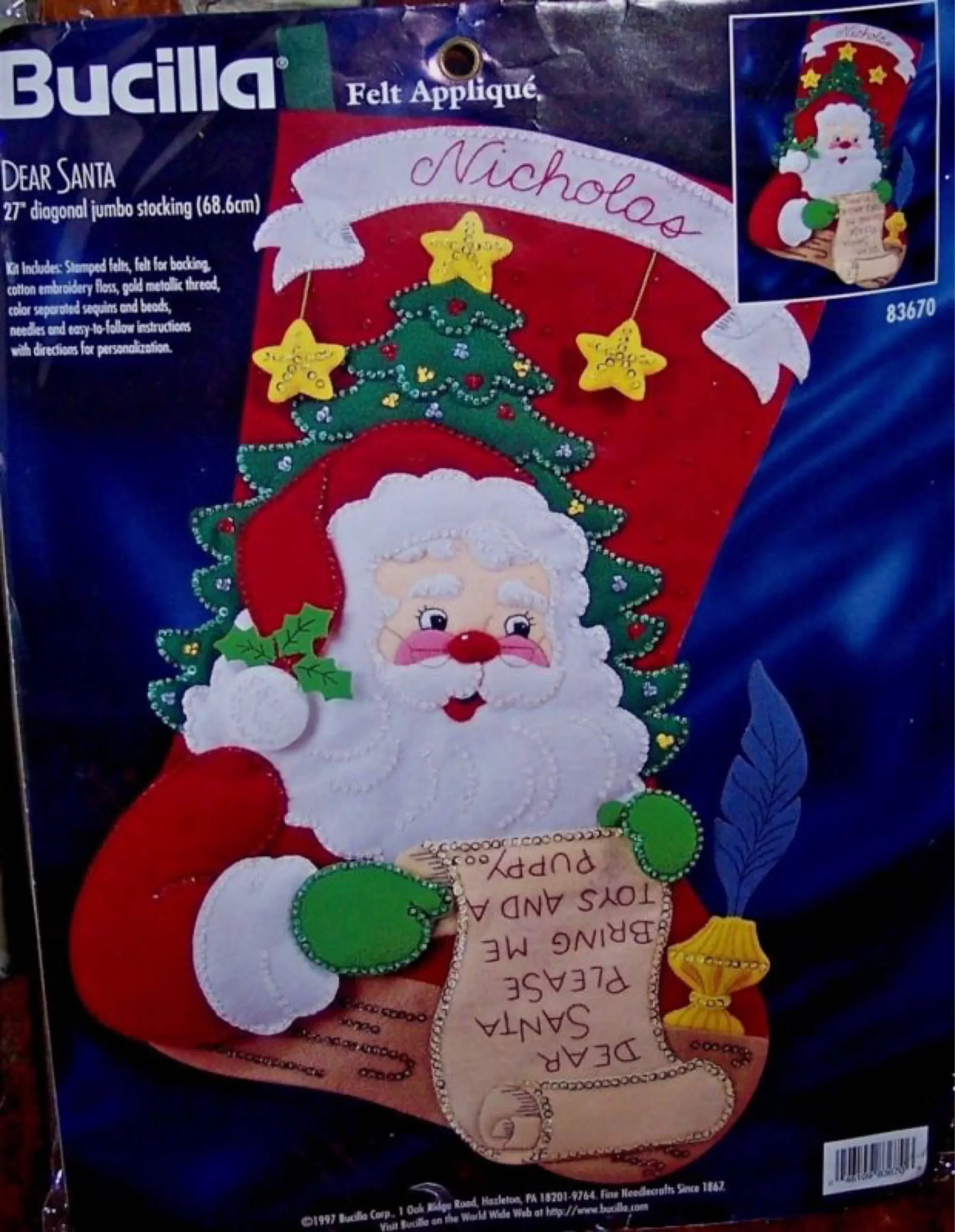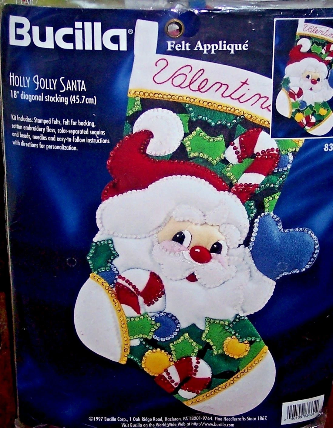Santa Face | 83609 | 1996? | 18″ | Heartfelt holiday creations stocking kit | ||