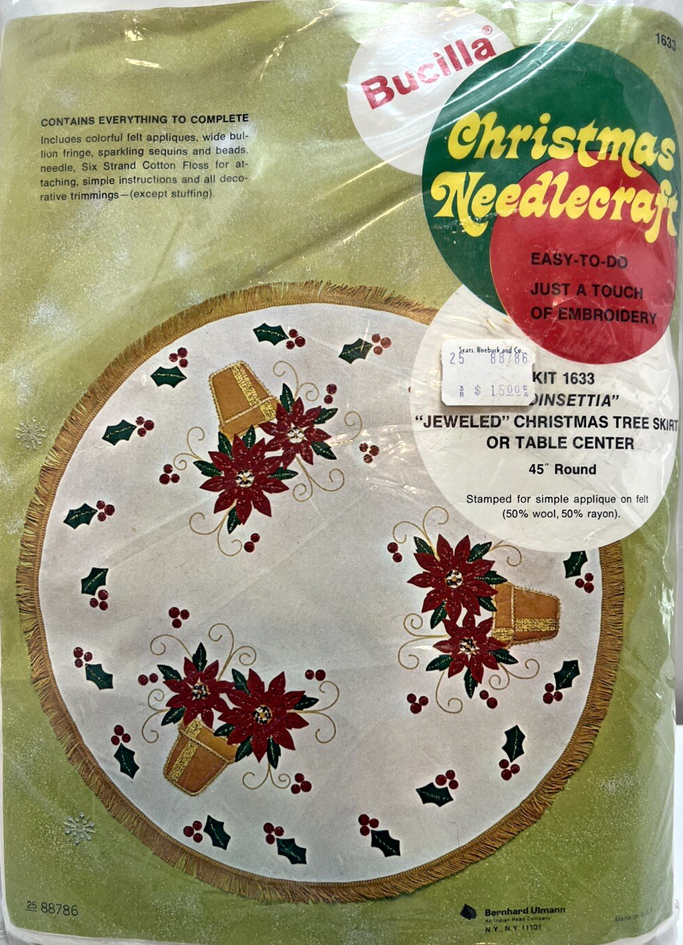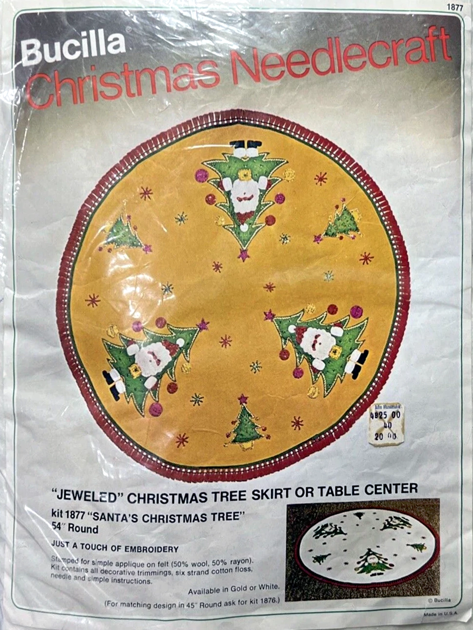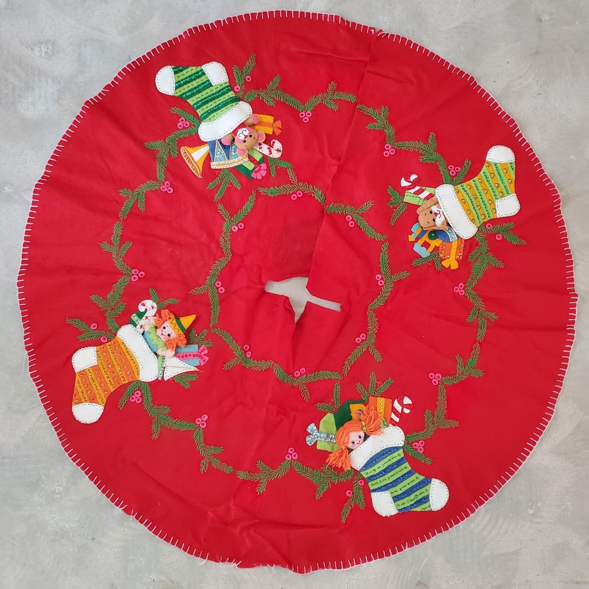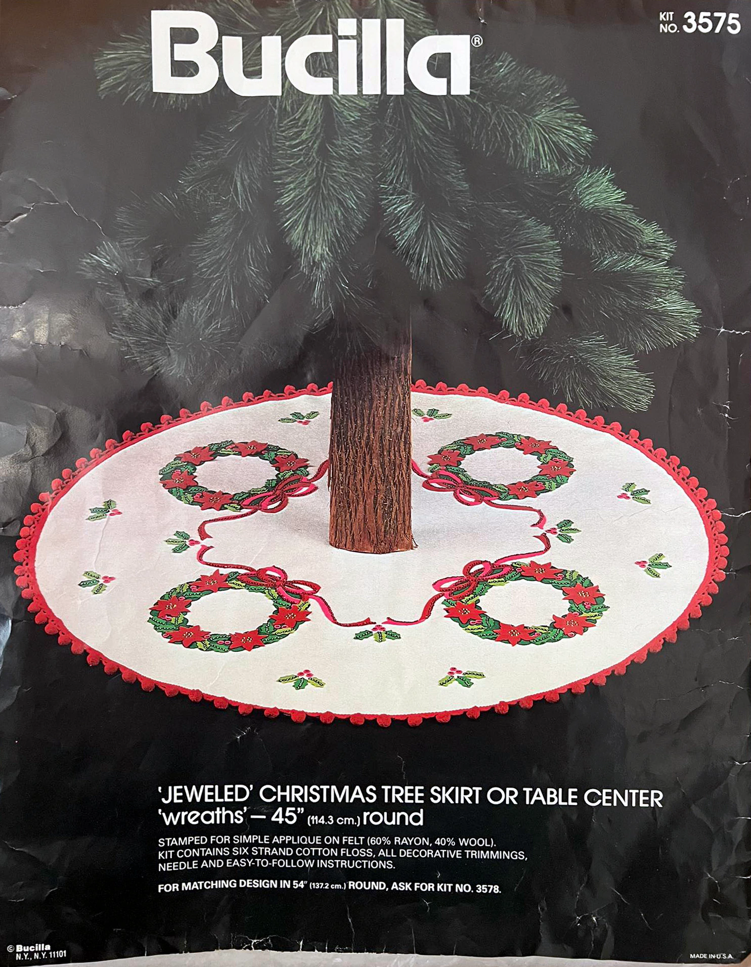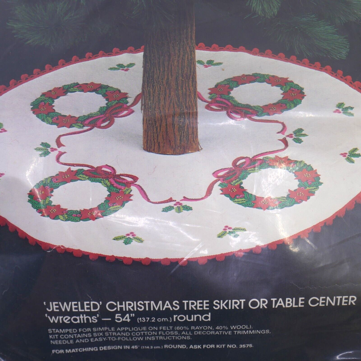 Wreaths 3575 1979 45″ round Jeweled Felt Tree Skirt Kit