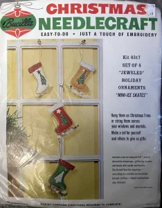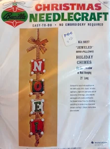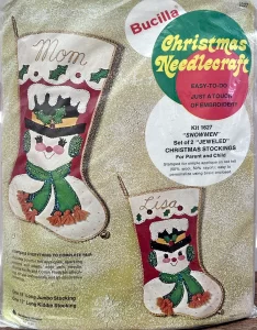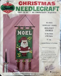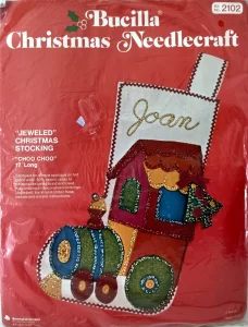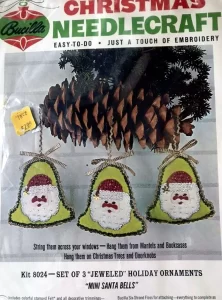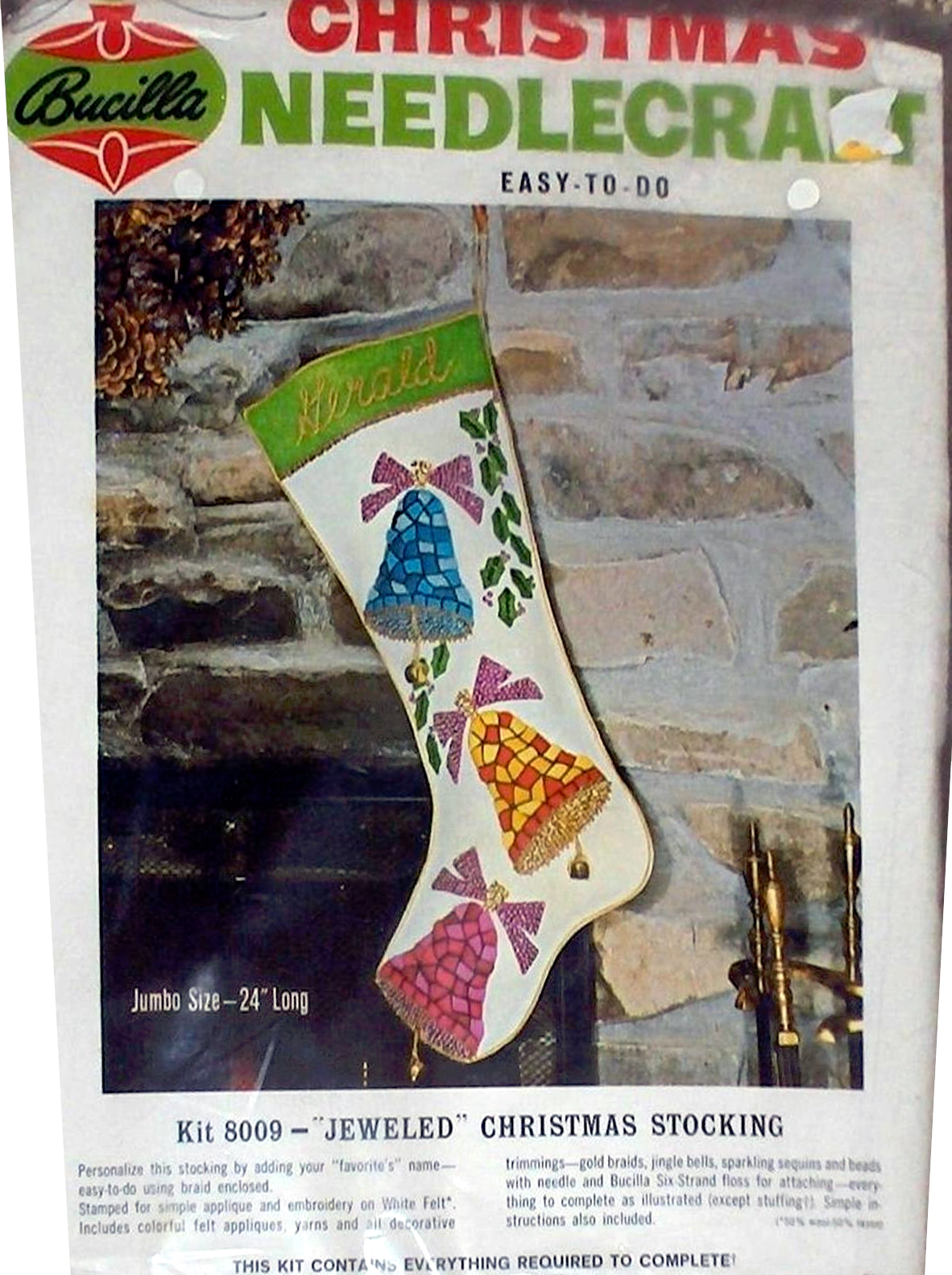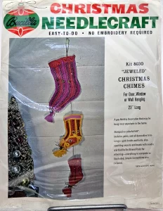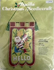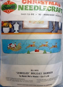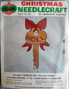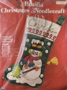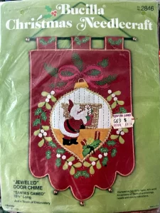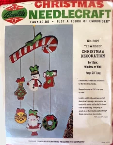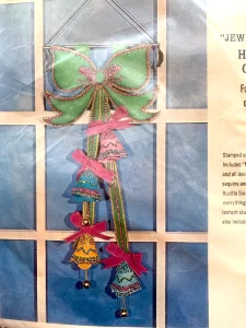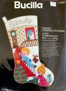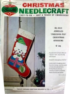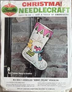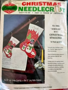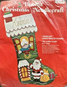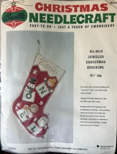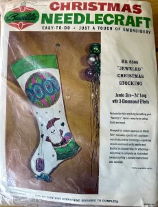 Jeweled Christmas stocking 8009 1970 24″ long Jumbo stocking kit. Bells themed.