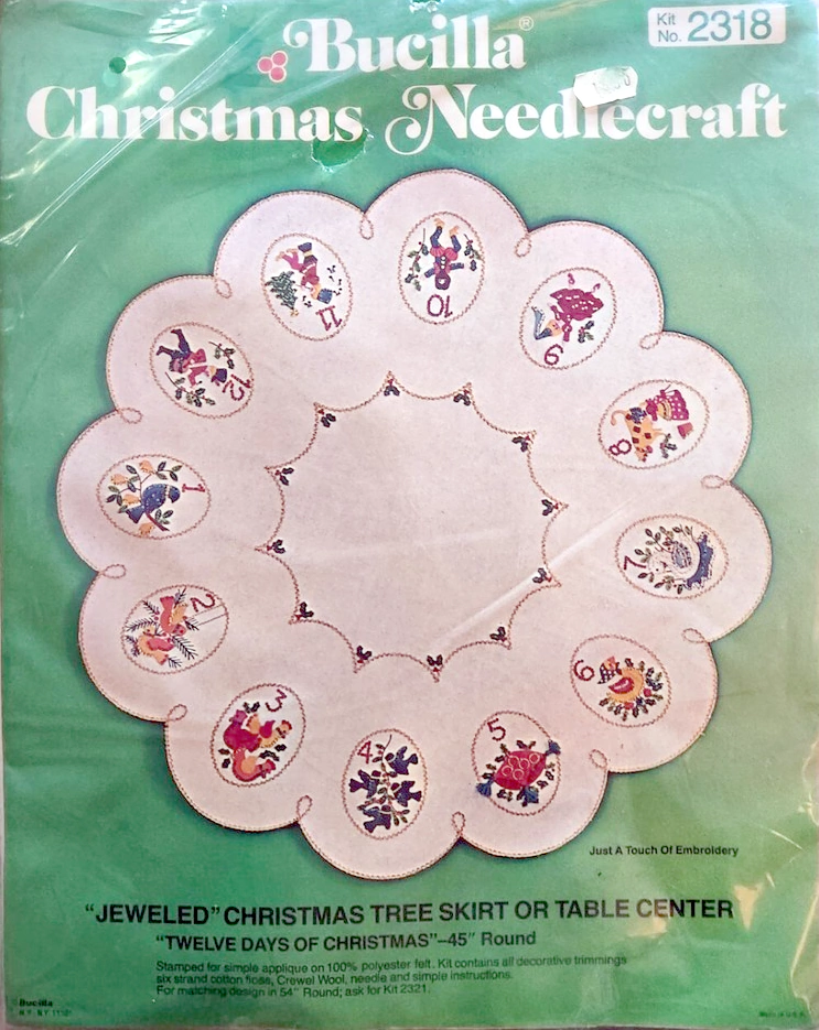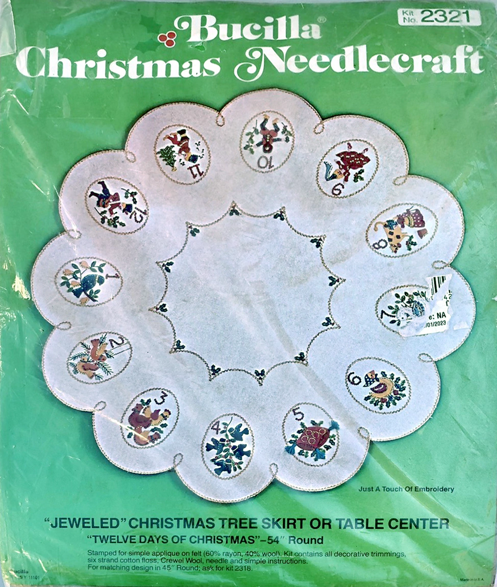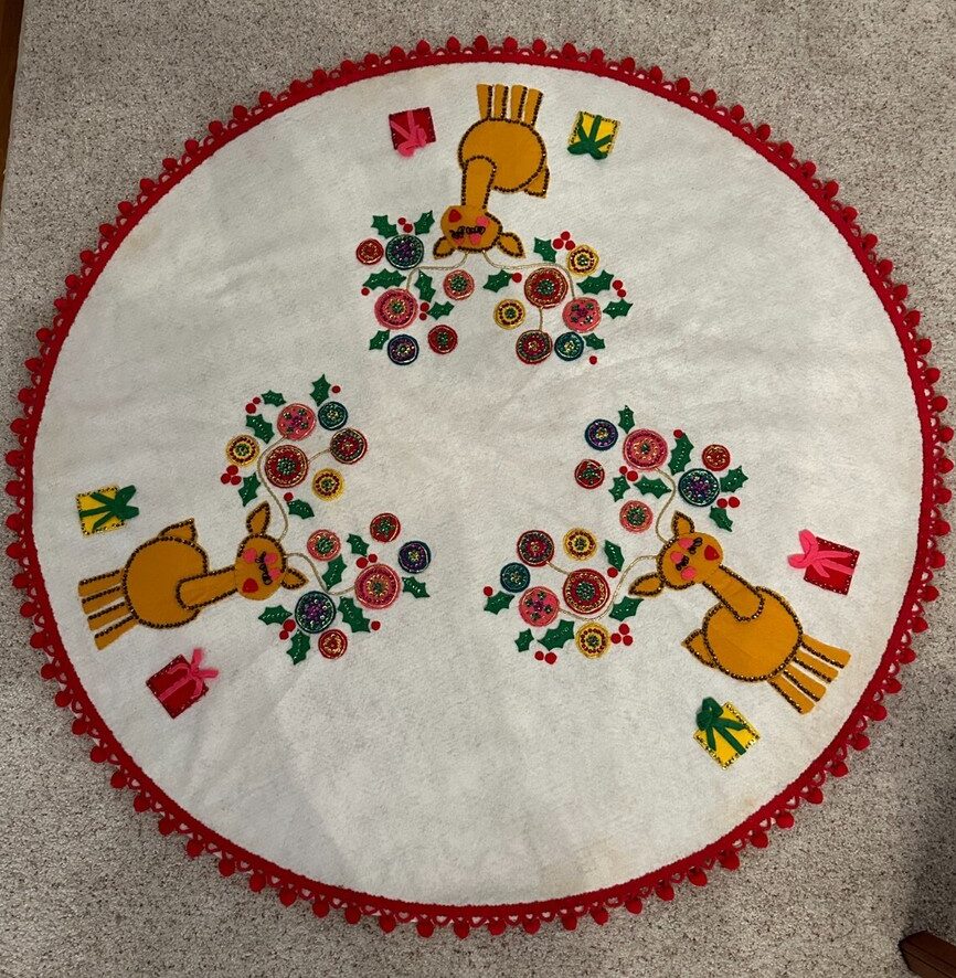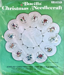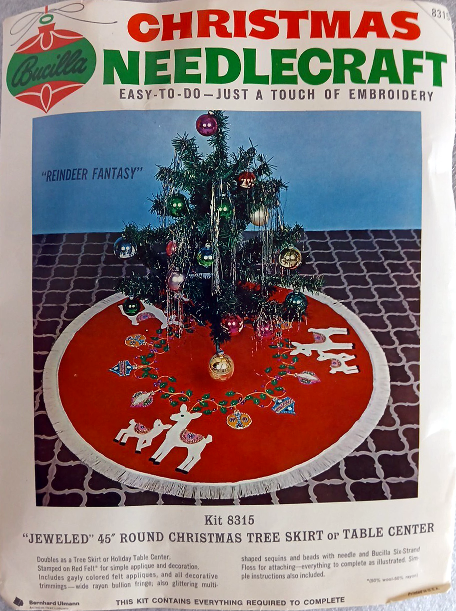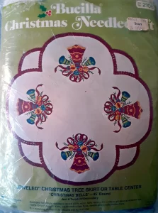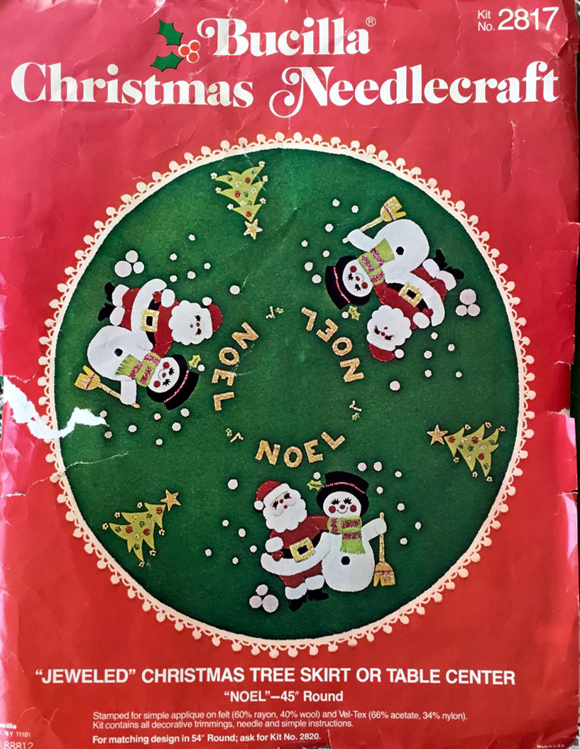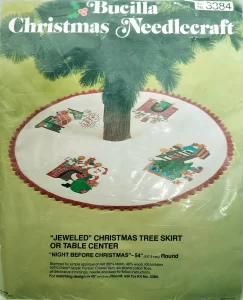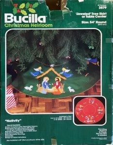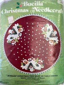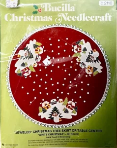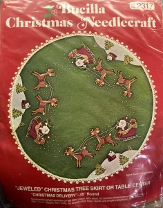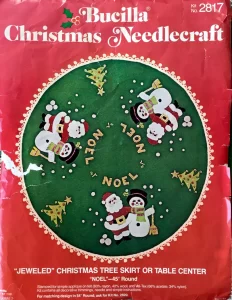 (see 8018) Jeweled tree skirt (angels) 36″ round 8017 1970 36″ Felt Tree Skirt Kit