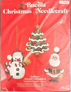 Santa & Friends 3590 1979 Set of 6 Bucilla- Jeweled Holiday Ornament “Santa & Friends” Set of 6