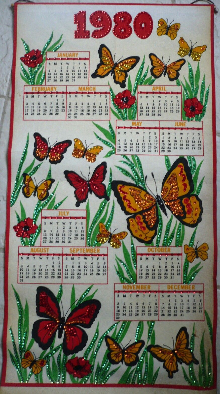Butterflies 3564 1979 1980 Jeweled Felt Calendar