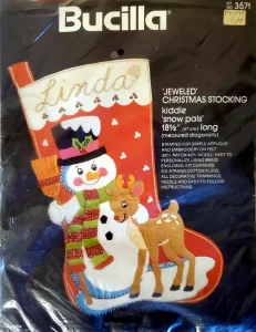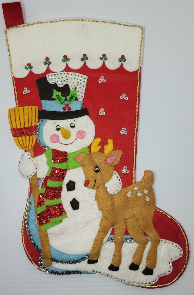 Snow Pals 3571 1979 18 1/2″ long Felt Kiddie Stocking. Snowman with deer.