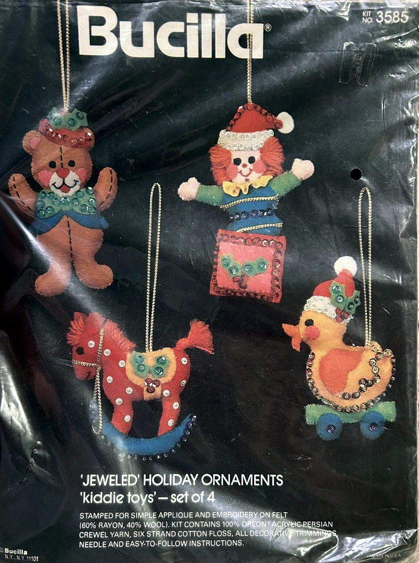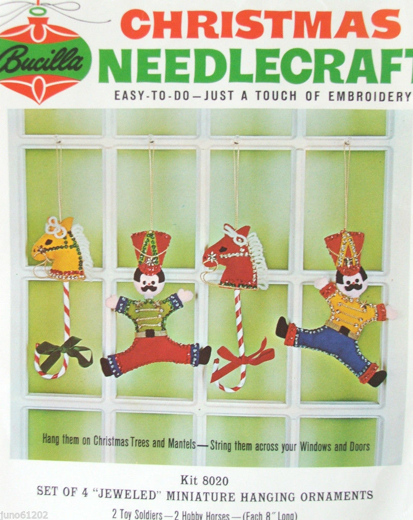 Toy Soldiers & Hobby Horses 8020 1970 Felt Ornament Kit. 8″ long, set of 4