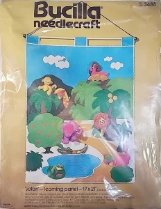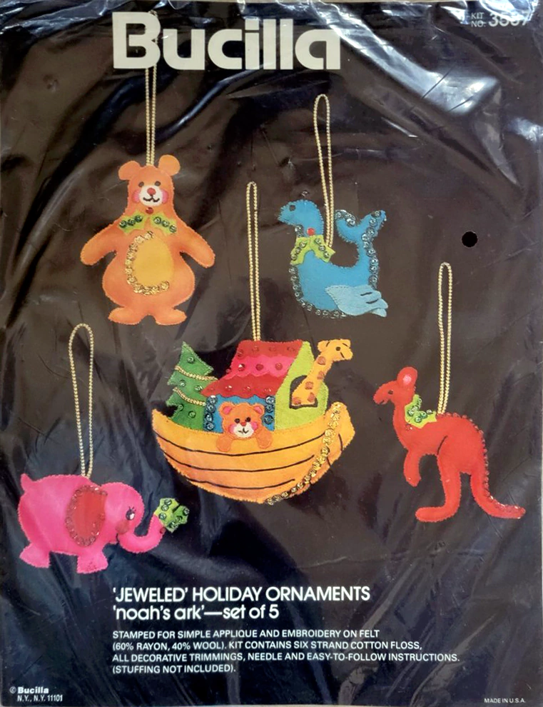 Noah’s Ark 3587 1979 Set of 5 Contents: Felt Stamped for Simple Applique, All Decorative Trimmings, Cotton Embroidery Floss, Needle, and Simple Instructions.