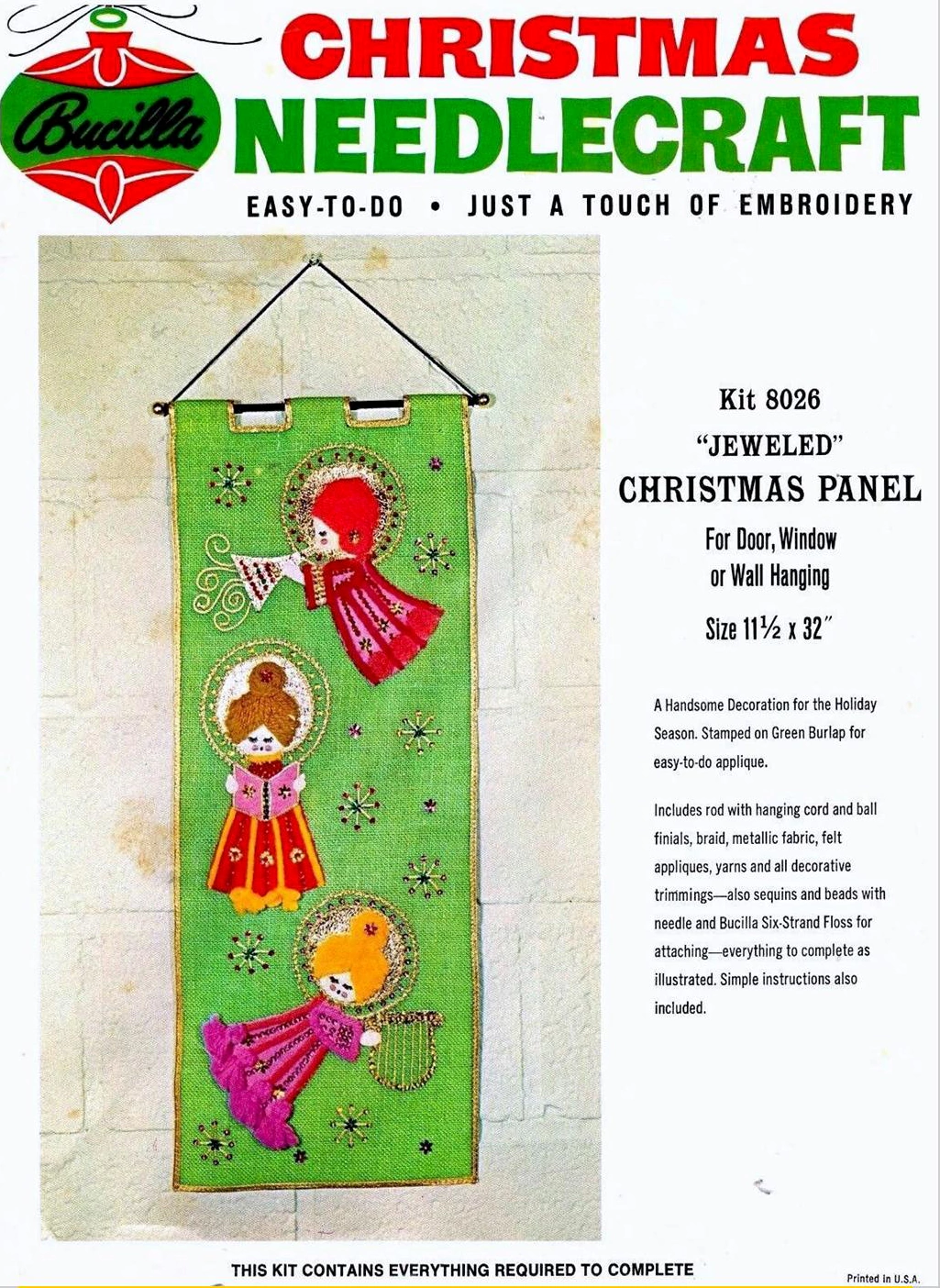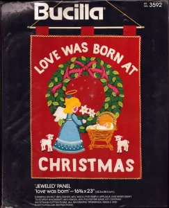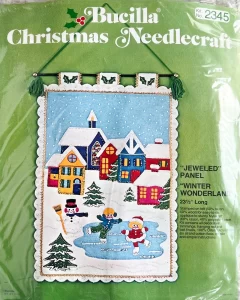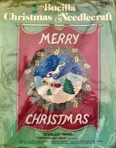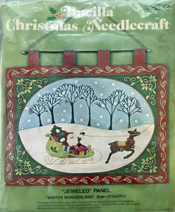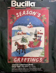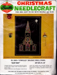 Silent Night 8045  1970 Jeweled Holiday Wall Hanging. cut size 24×36″, 20×30 finished.