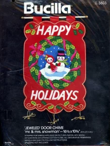 Mr & Mrs Snowman 3603 1979 Felt Door Chime Wall Hanging