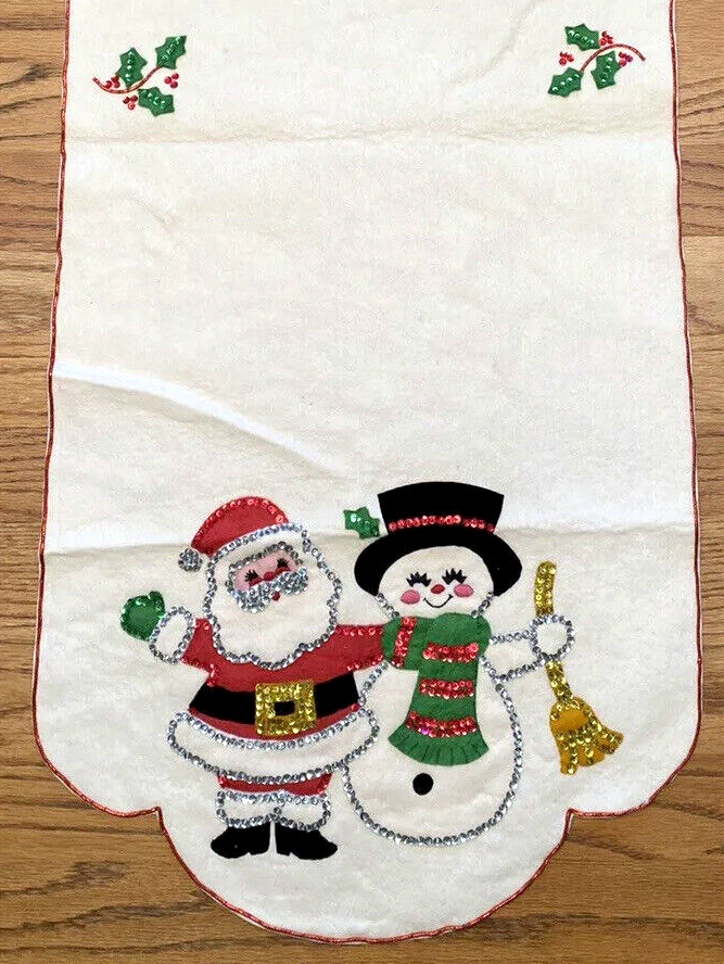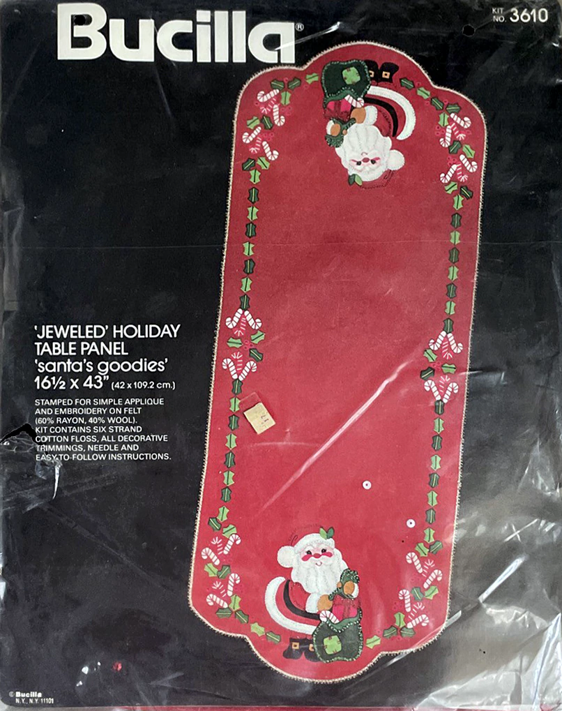 Santa’s Goodies 3610 1979 16.5×43″ Felt Tablerunner