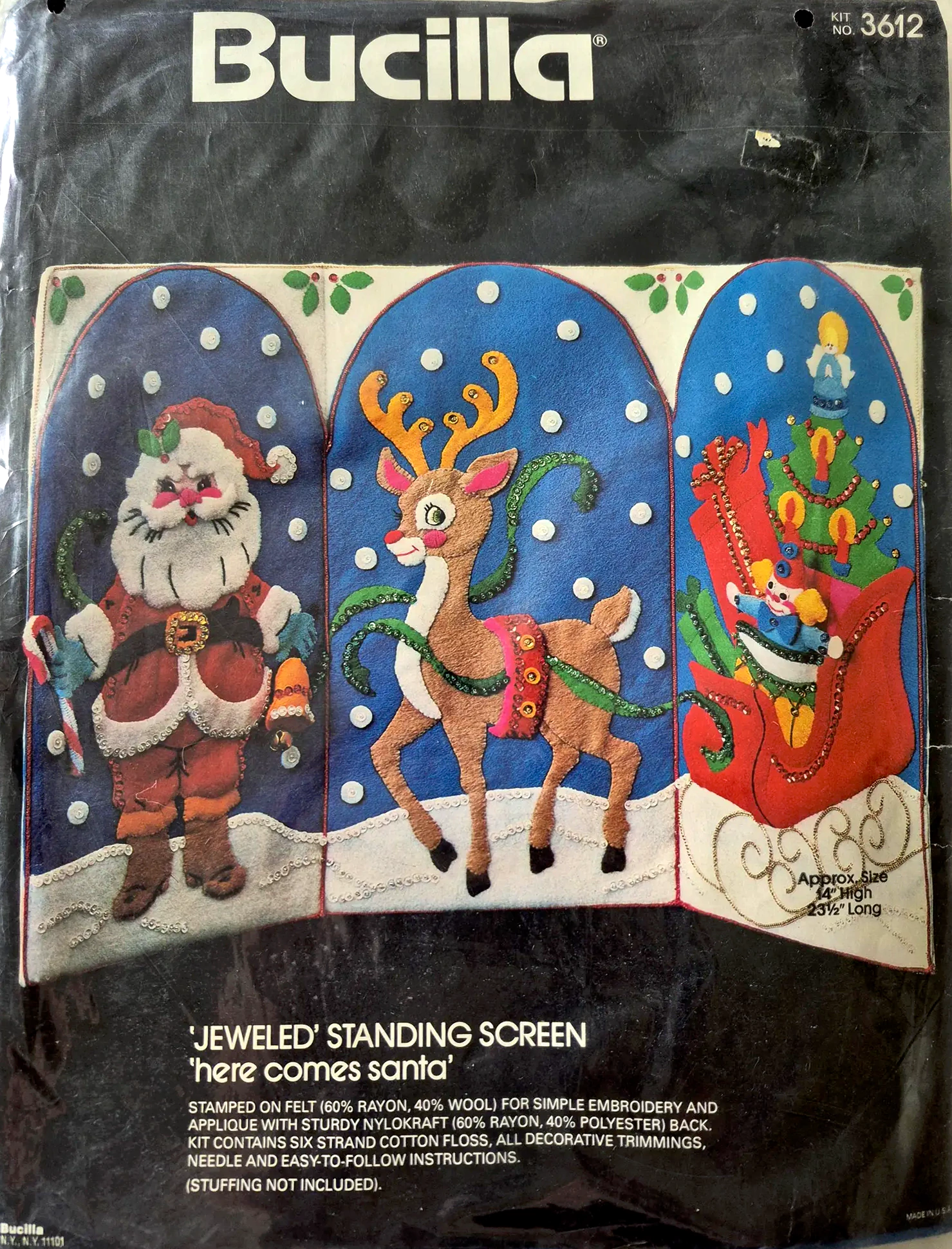 Here Comes Santa 3612 1979 14×23.5″ Jeweled Standing Screen (Felt Decor)