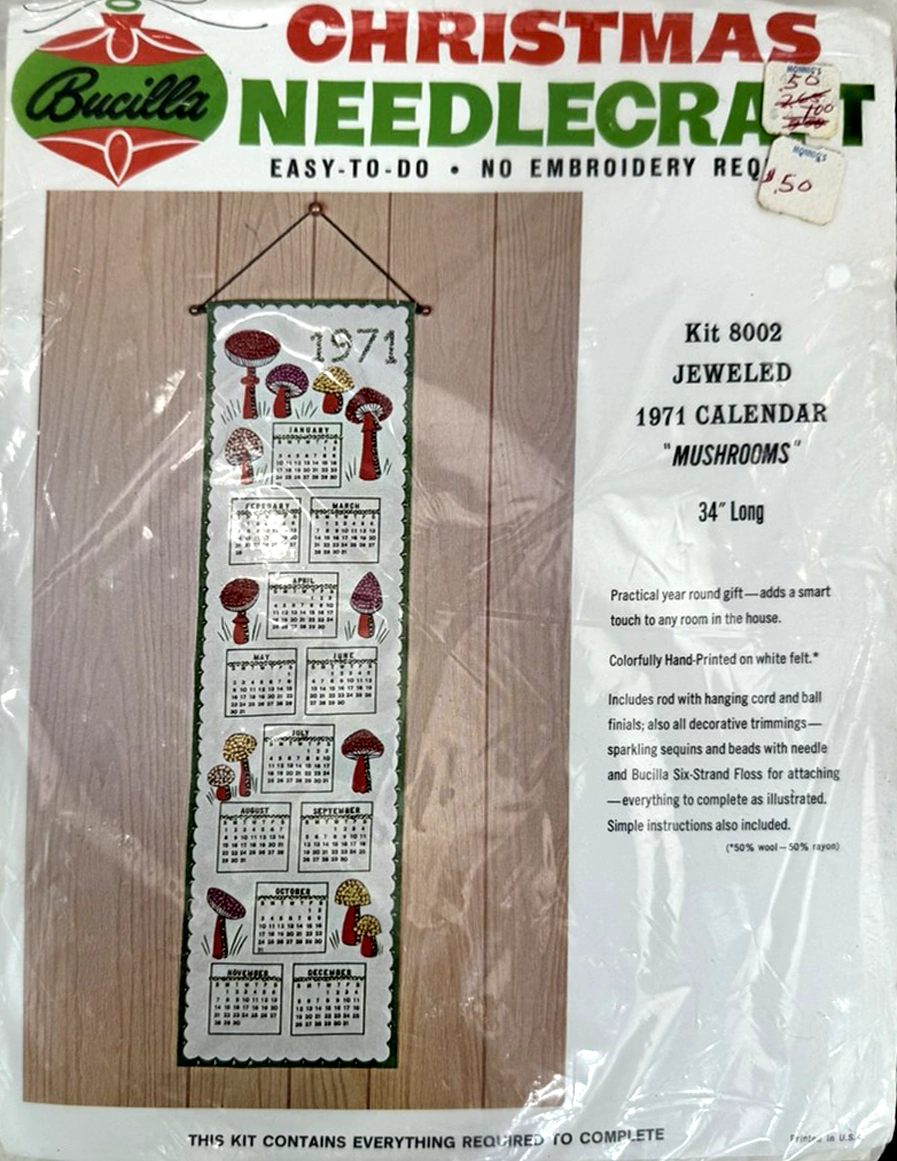 Mushrooms 1971 Jeweled Calendar 8002 1970 Jeweled Calendar. 34″ long