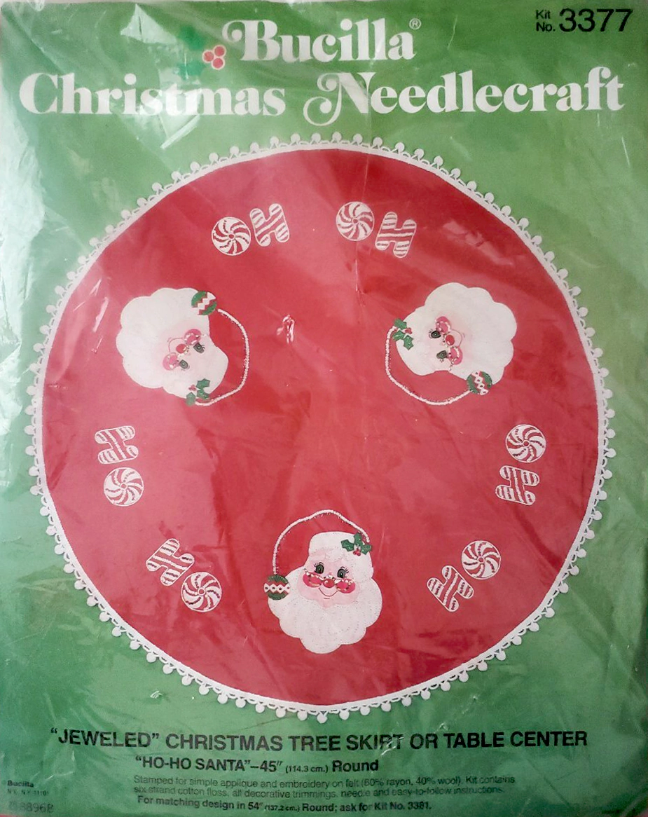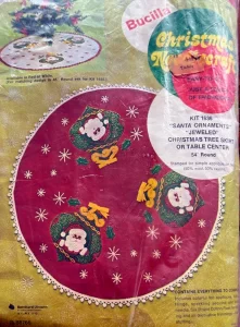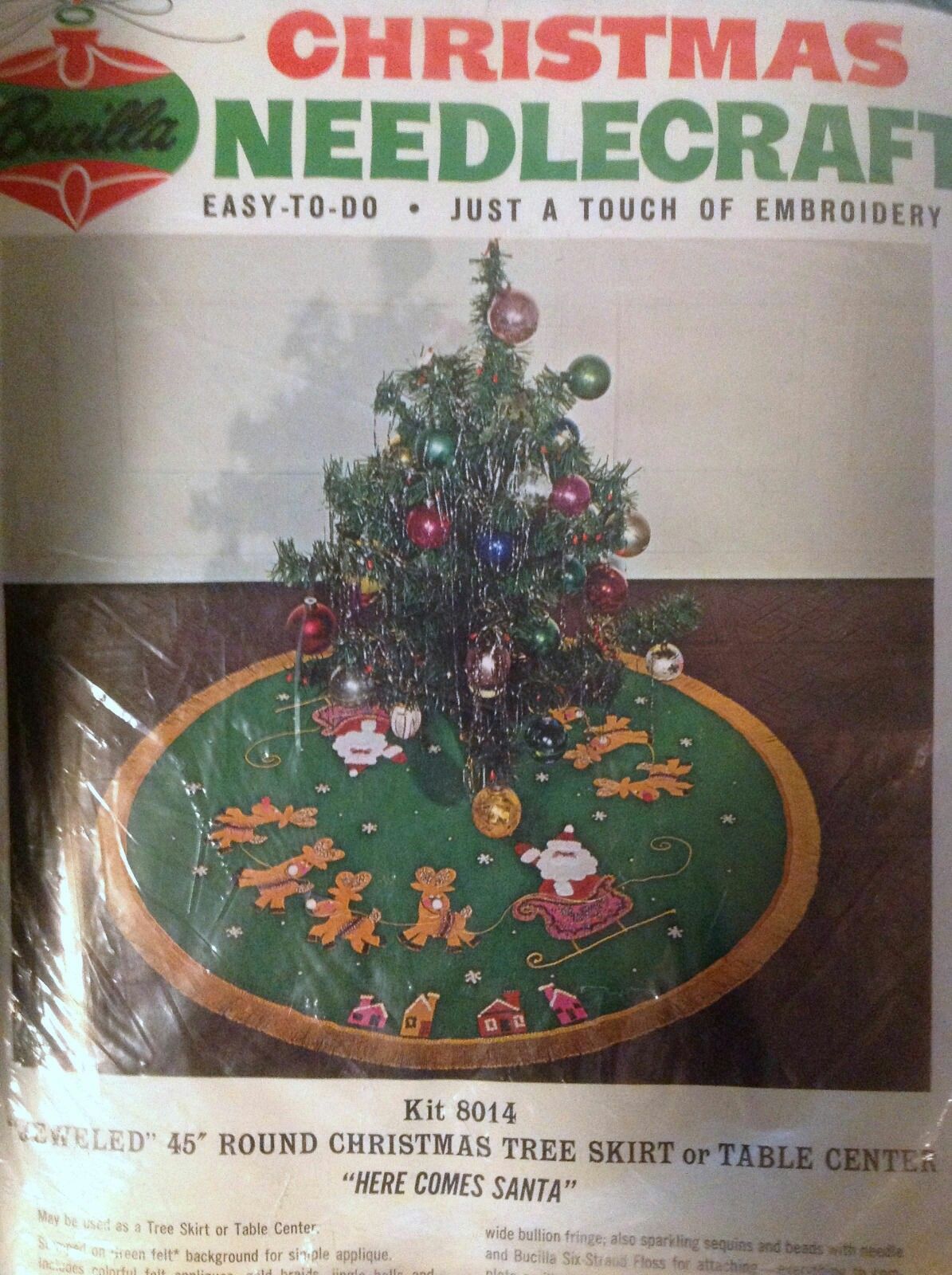 Here Comes Santa 45″ round 8014 1970 Felt Tree Skirt Kit