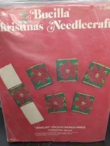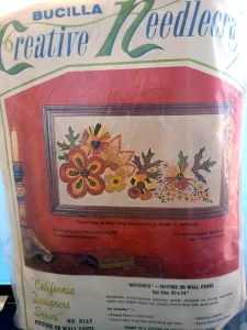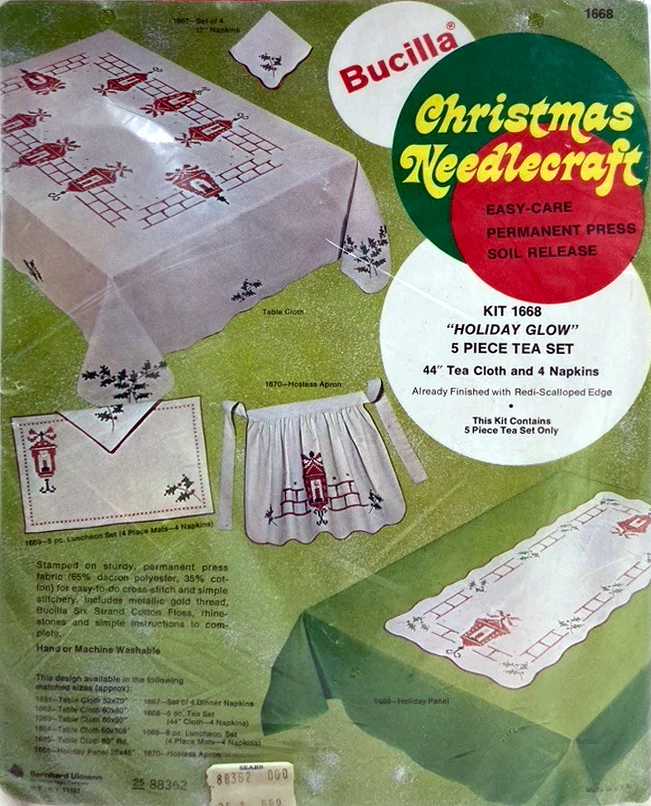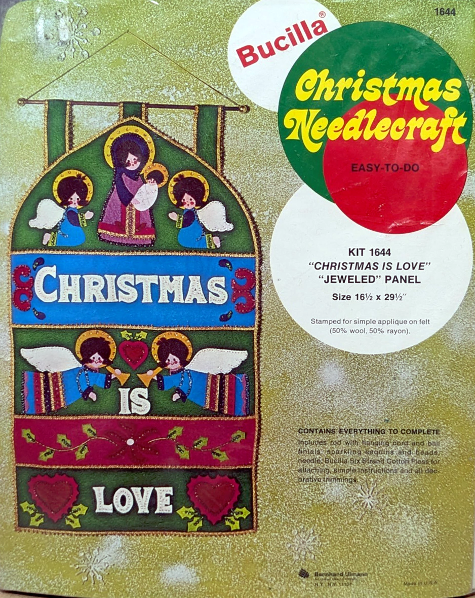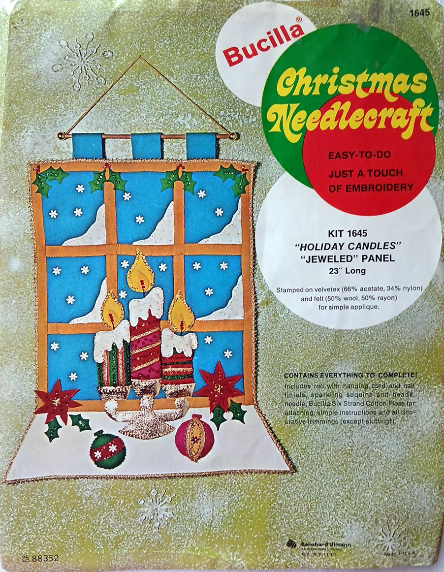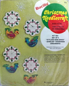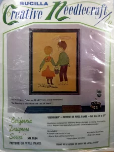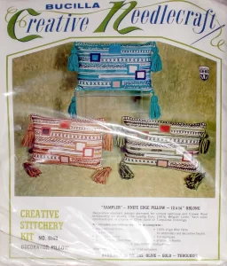 ** Additional external resource: Photo albums of almost all kits from 1979 and before can be found on Facebook in the albums section of the group Vintage Bucilla Buddies, lovingly compiled by group admin Rebecca Reeves. Depending on the group permission settings, you may have to join the Facebook group to be able to view the albums. **