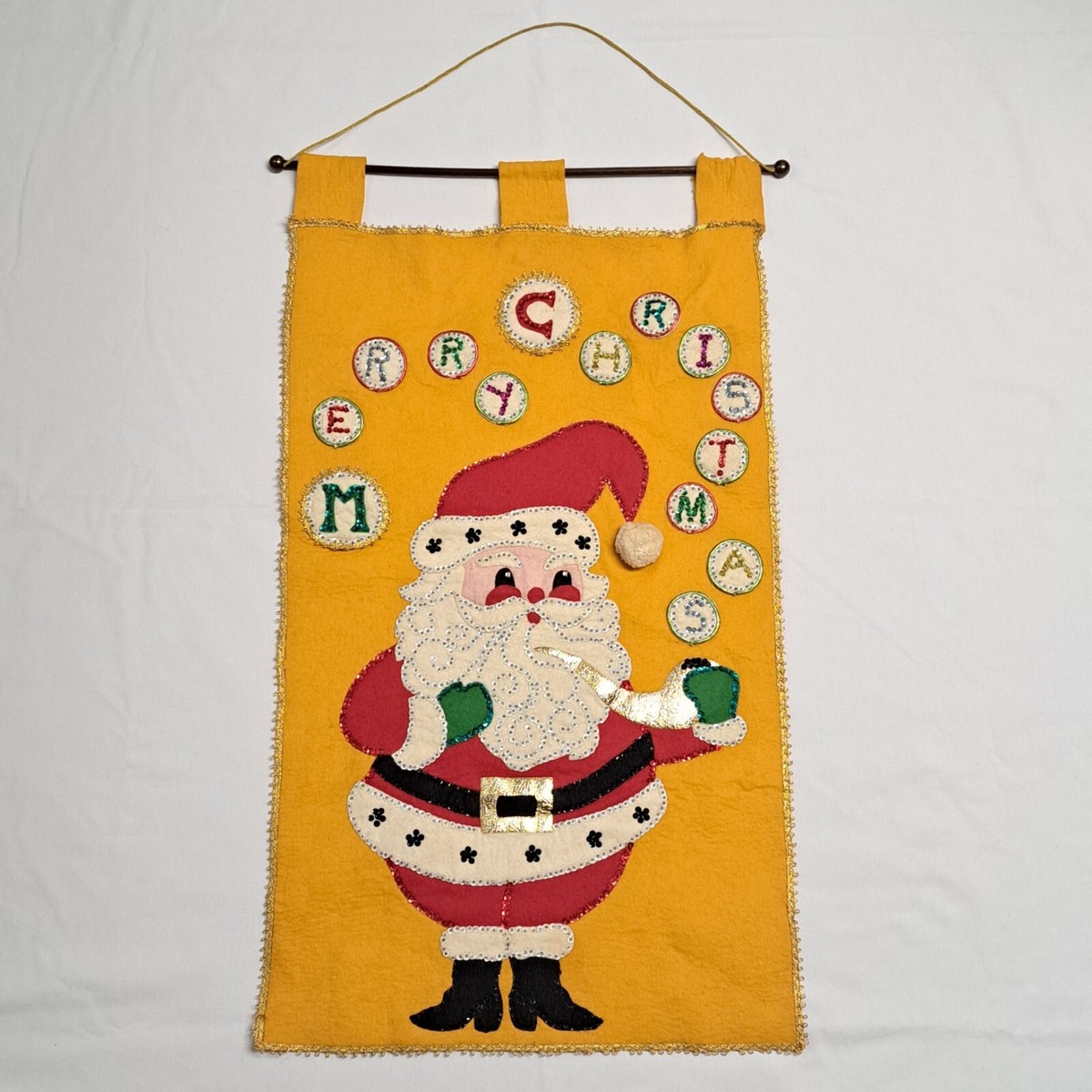 Jeweled Holiday Banner 8031 1970 Felt Wall Hanging