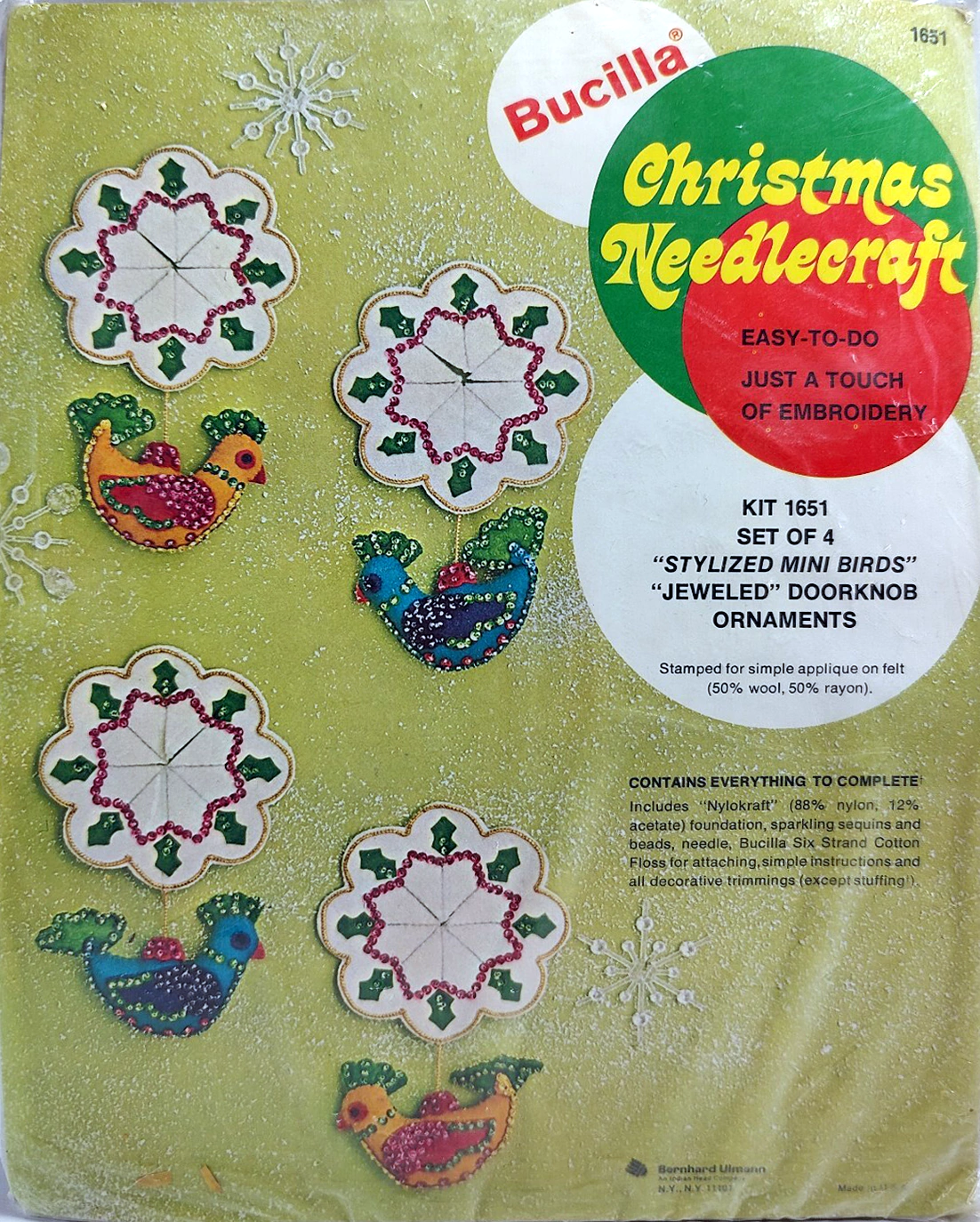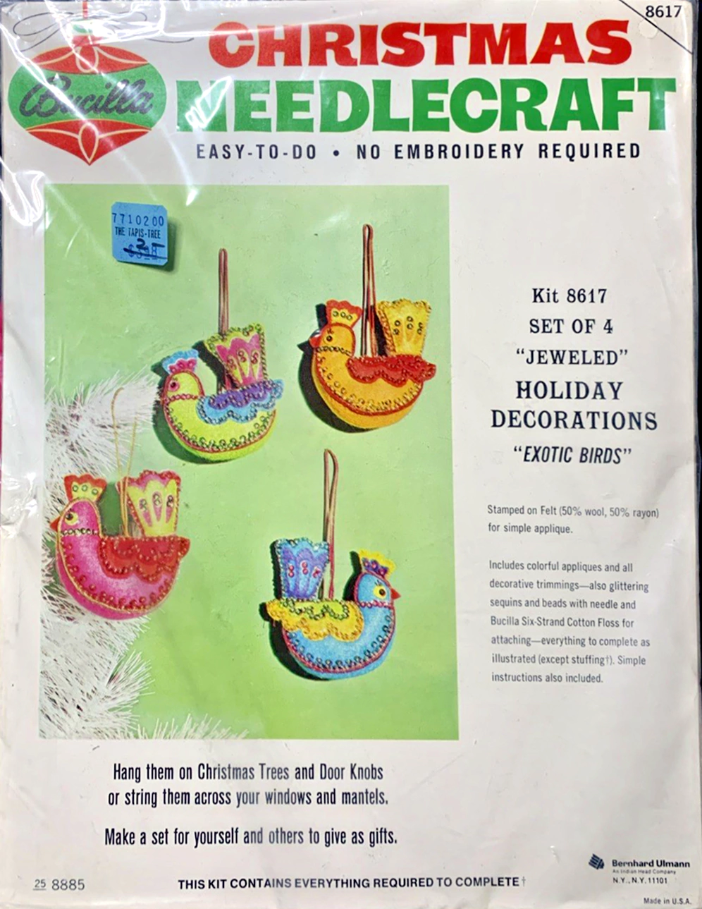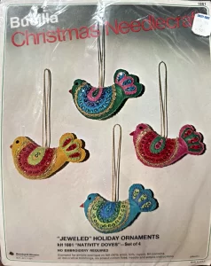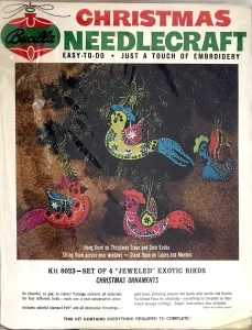 Exotic Birds 8023 1970 Felt Ornament Kit, Reprint of 1842 from 1965 with minor changes such as color of birds.