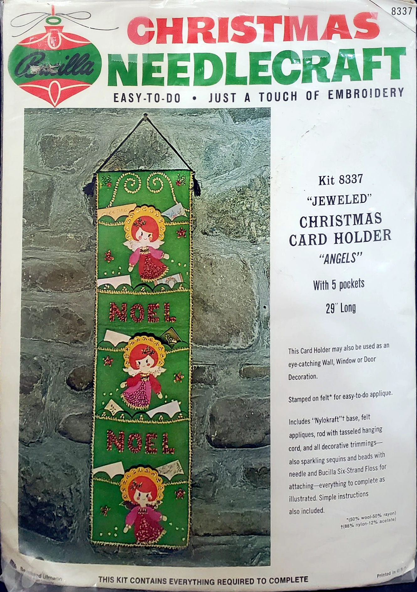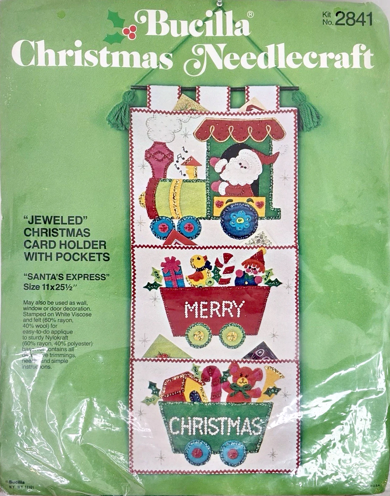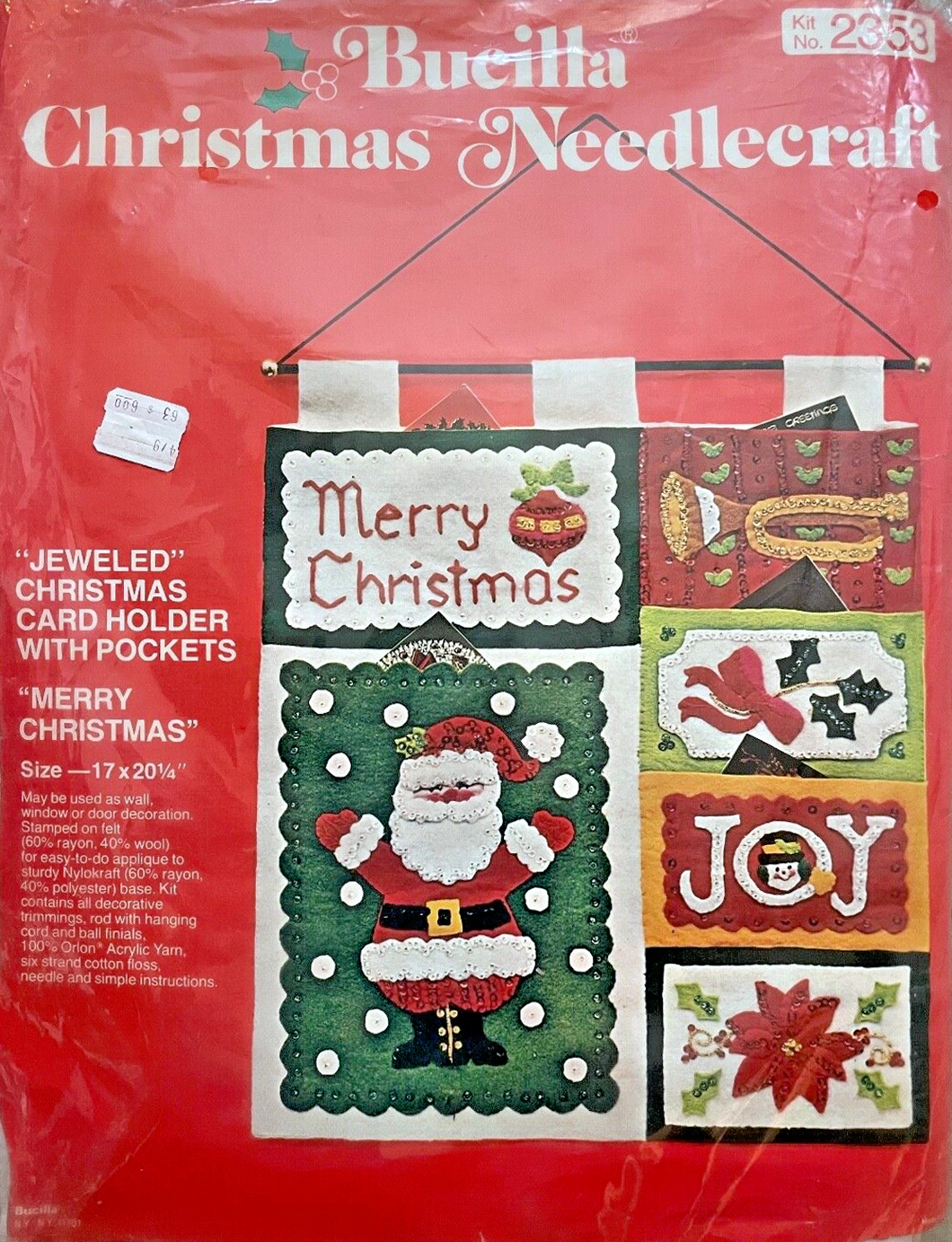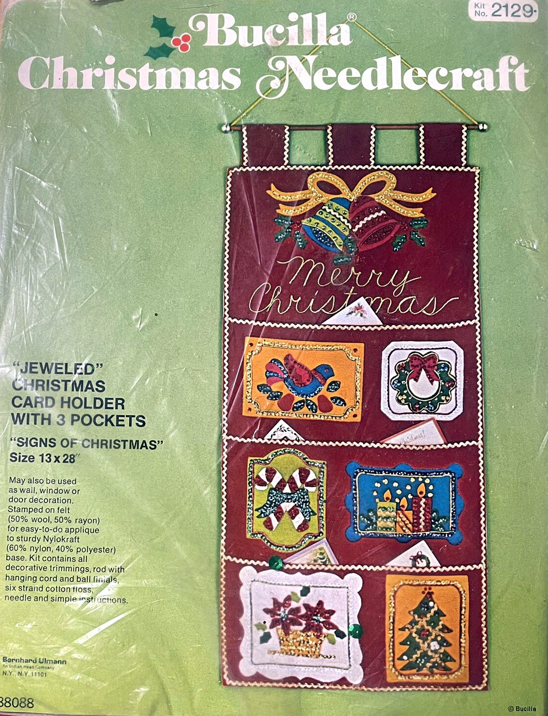 Jeweled Christmas Card Holder with 5 pockets 8041 1970 Felt Christmas Card Holder Kit
