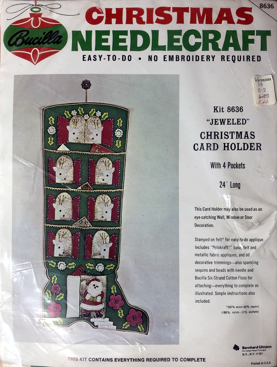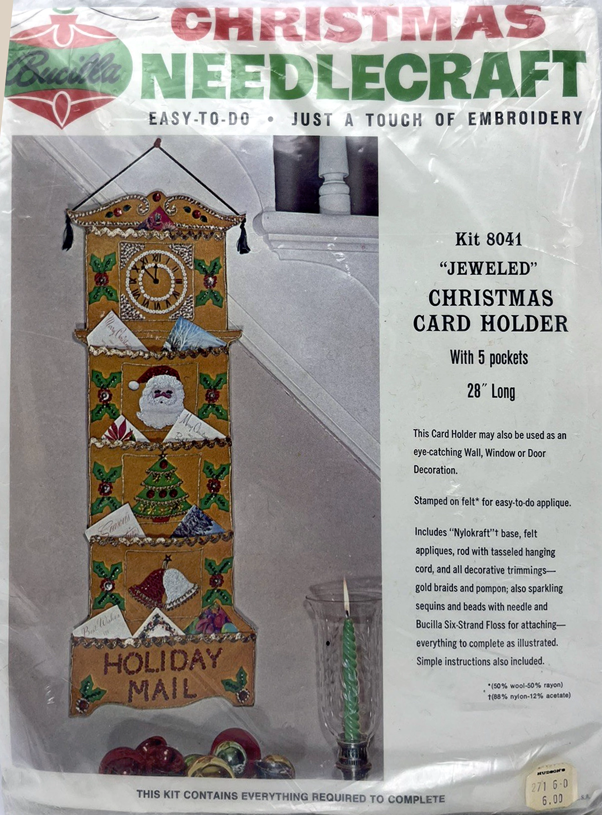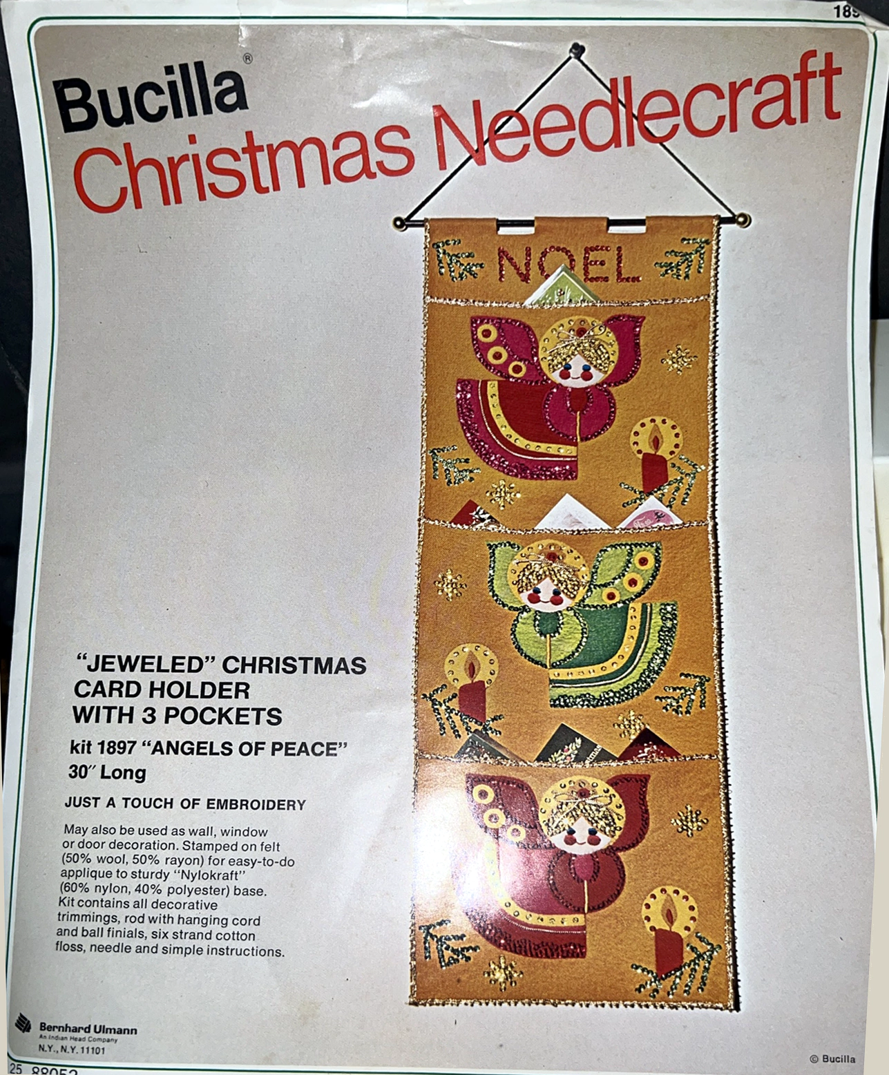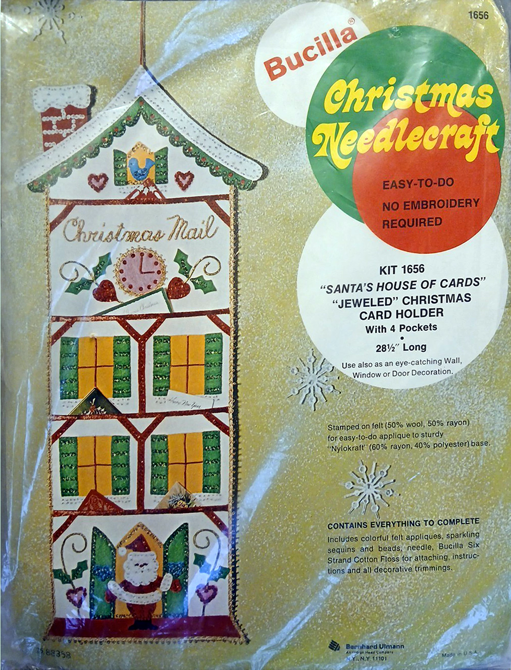 Jeweled Christmas Card Holder with 5 pockets 8041 1970 Felt Christmas Card Holder Kit