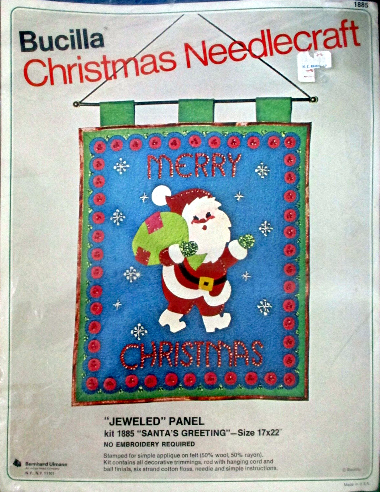 Merry Christmas 3596 1979 6¾ x 44½” Felt Wall Hanging (Jeweled Christmas Panel)