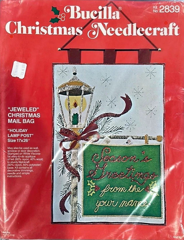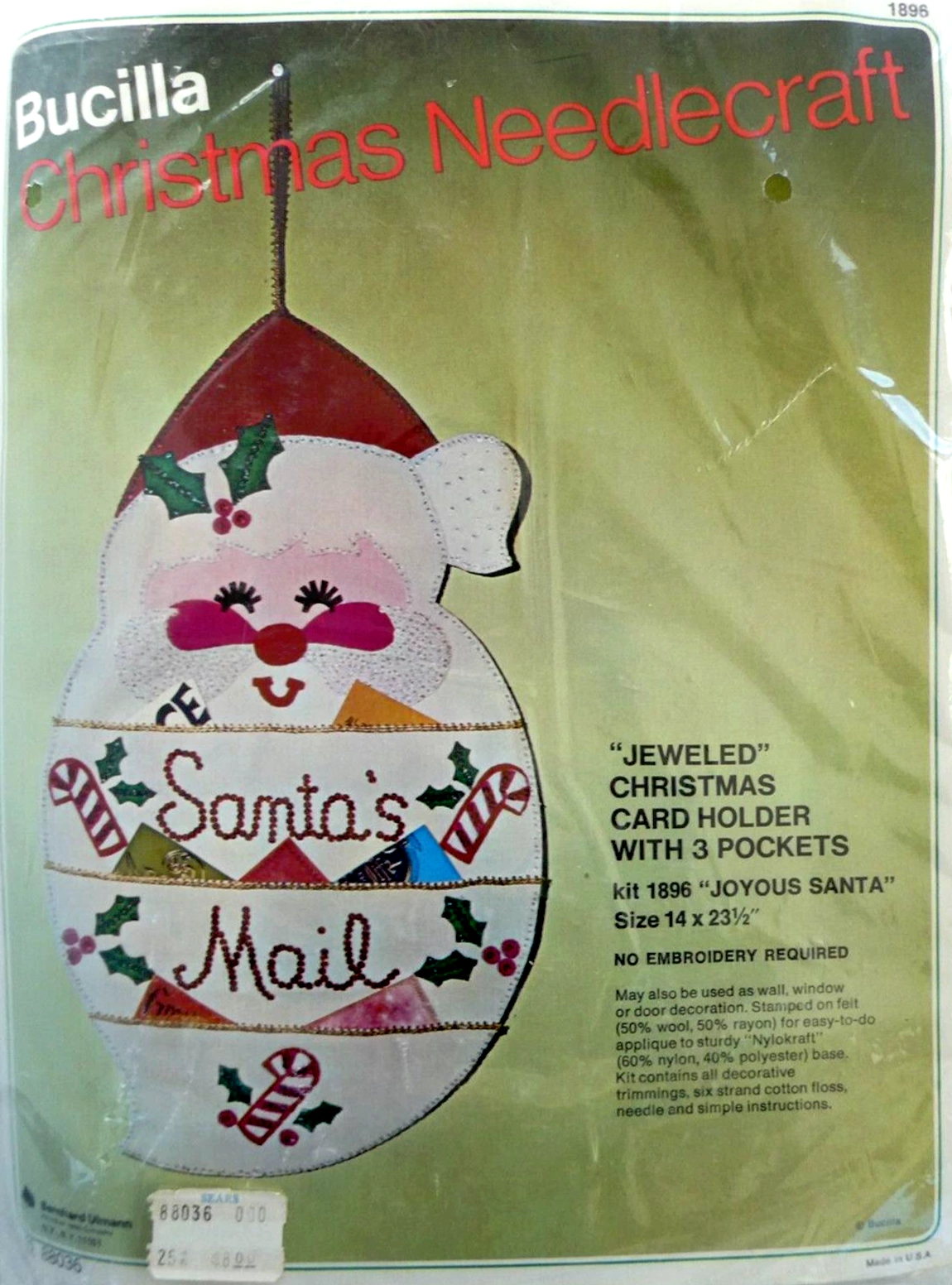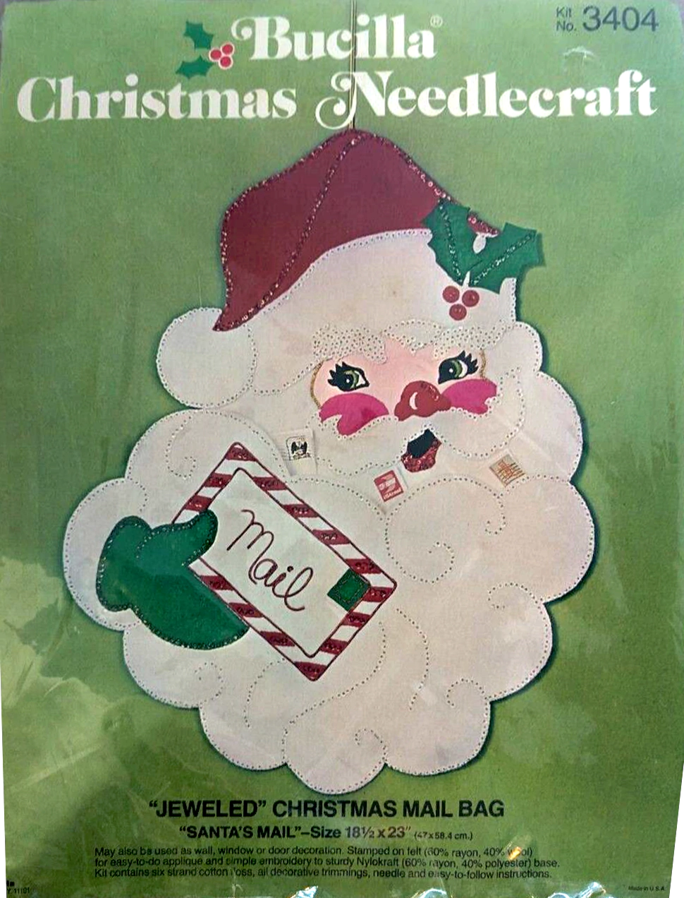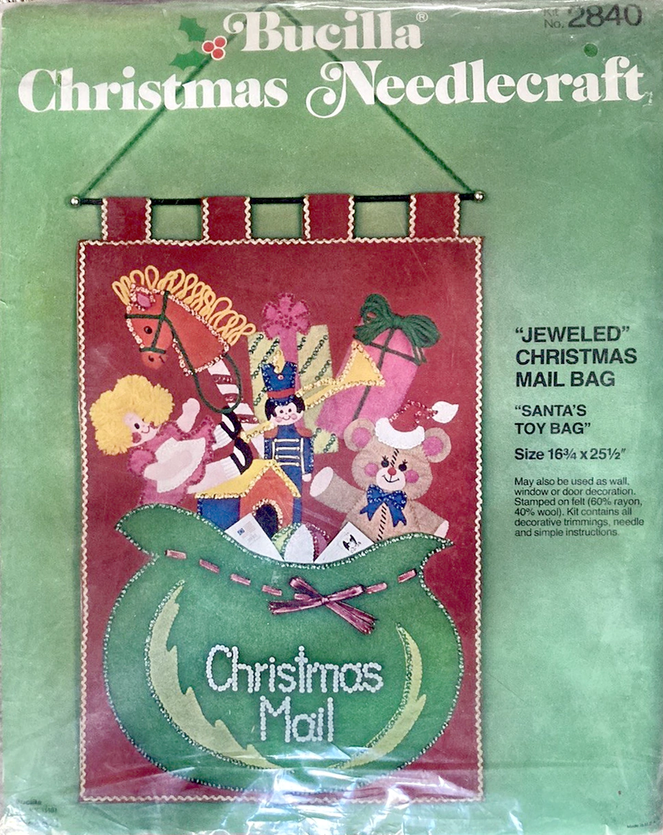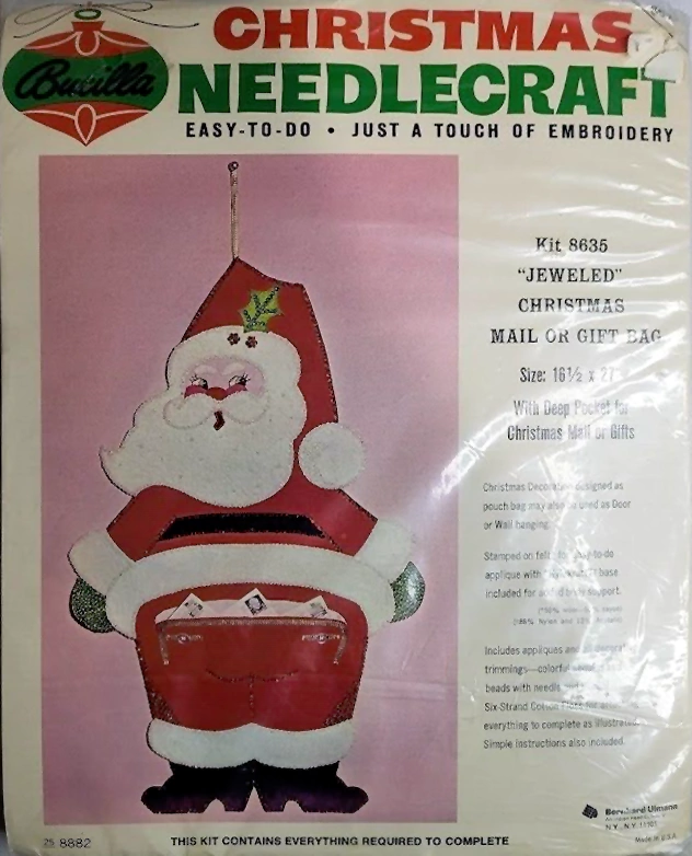 Jeweled Holiday mail or gift bag 8040 1970 Felt Christmas Card Holder Kit