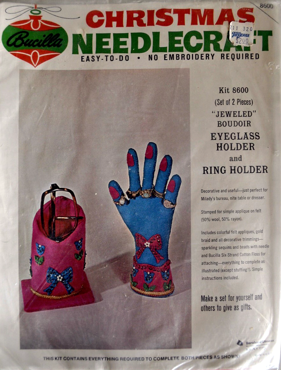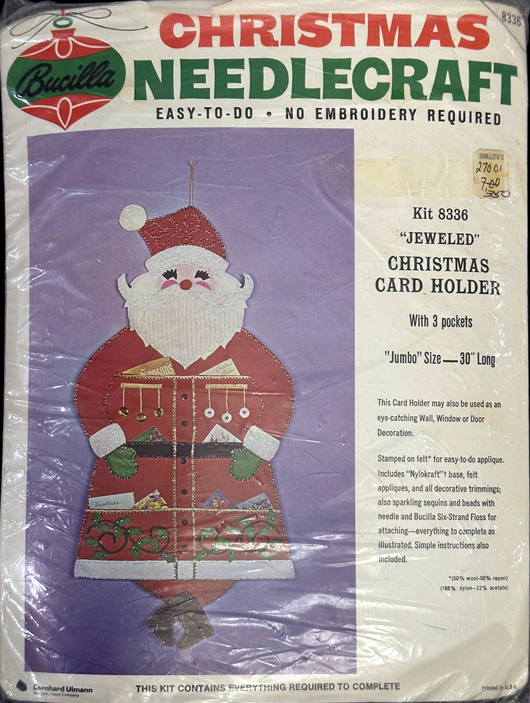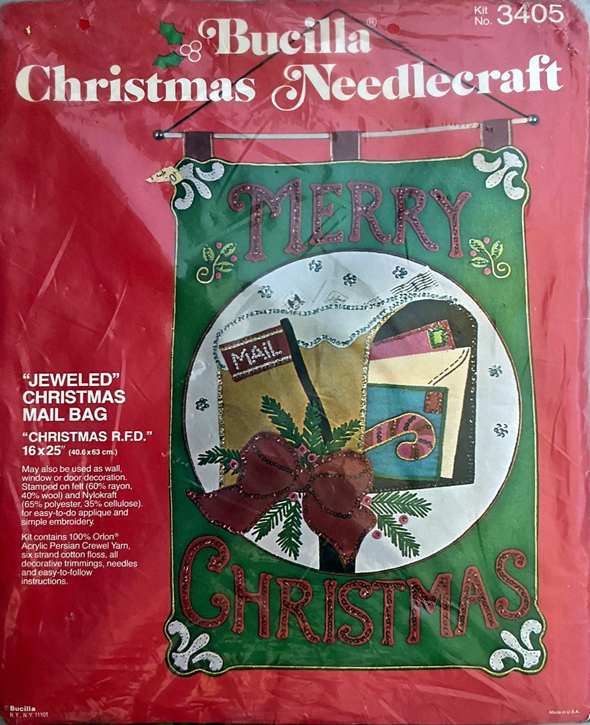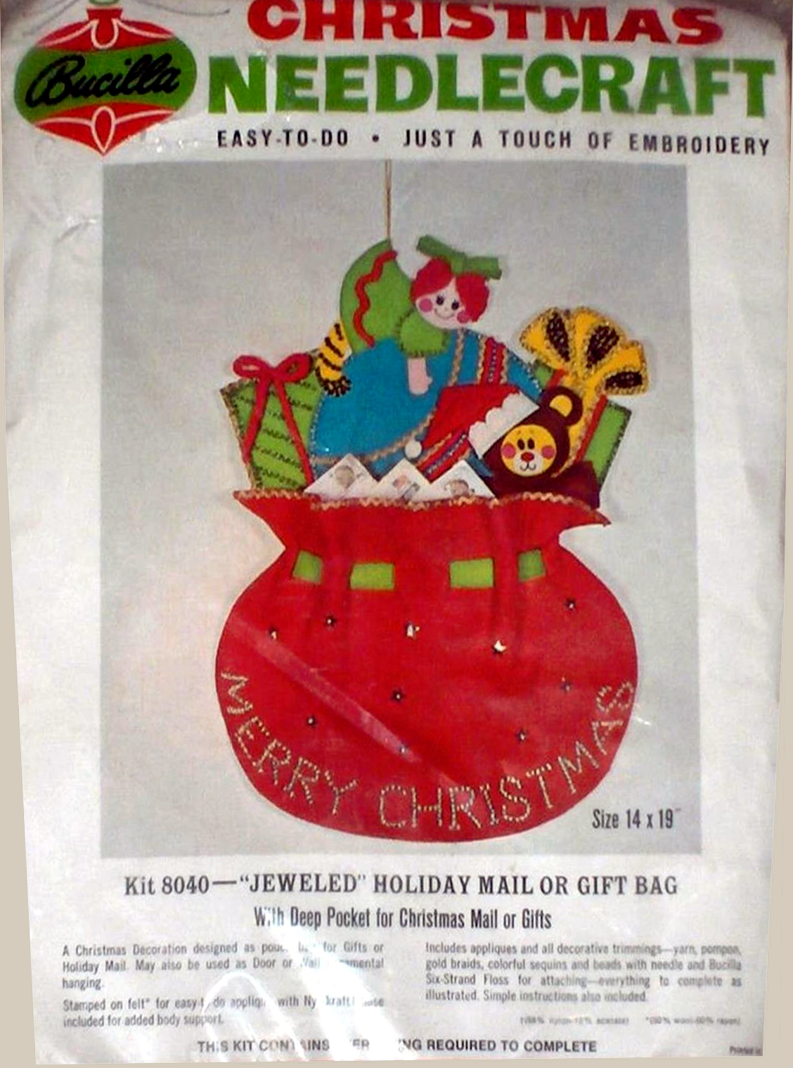 Jeweled Holiday mail or gift bag 8040 1970 Felt Christmas Card Holder Kit