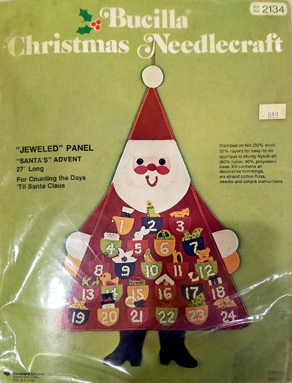 24 Days to Christmas 3597 1979 Felt Wall Hanging (Jeweled Christmas Panel)