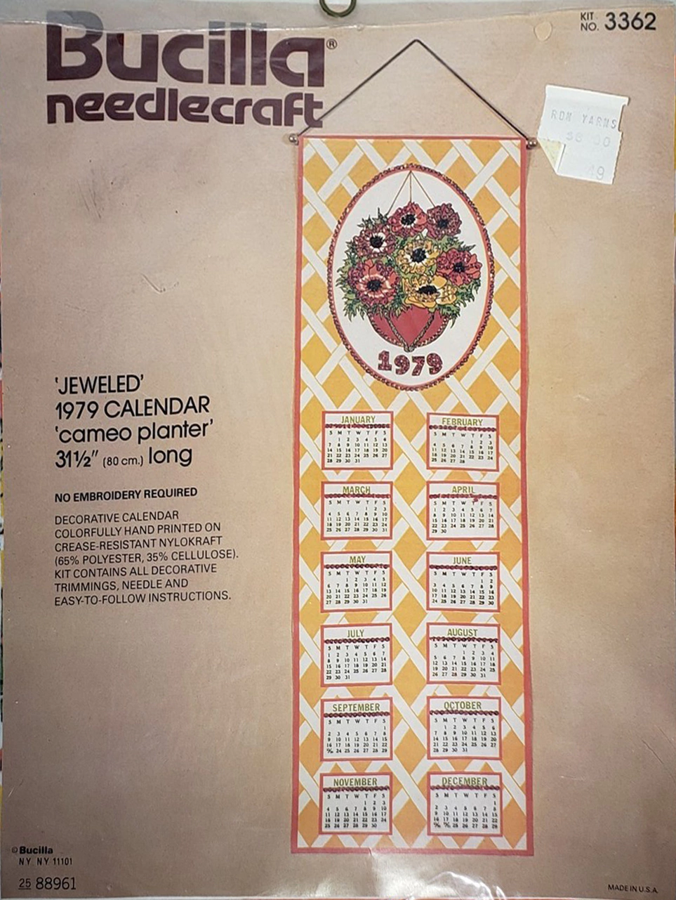 (photo needed) Kitchen Sampler 3563 1979 1980 Jeweled Felt Calendar