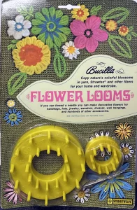 Flowers are quickly made on the Bucilla “Multi-Fleur” Loom (not included). Ask for Art. 4616.