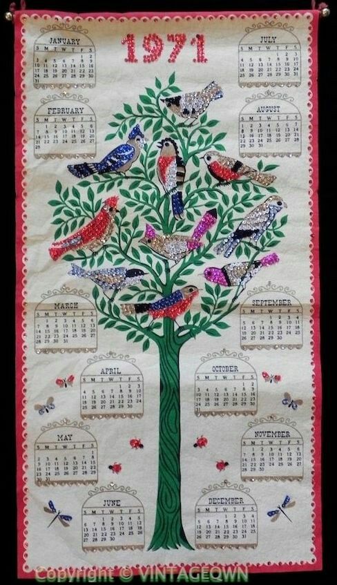 Birdland 8004 Jeweled 1971 Calendar 16.5×31″