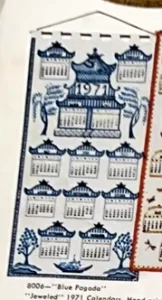Blue Pagoda 8006 Jeweled 1971 Calendar 16.5×31″