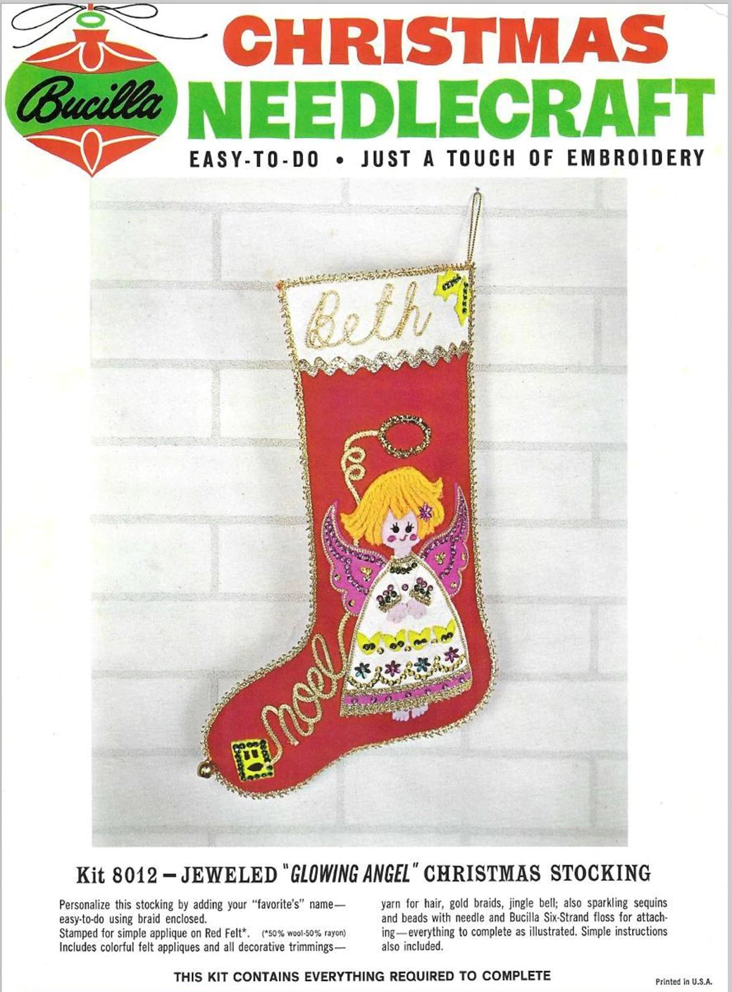 Glowing Angel 8012 1970 Felt Stocking Kit