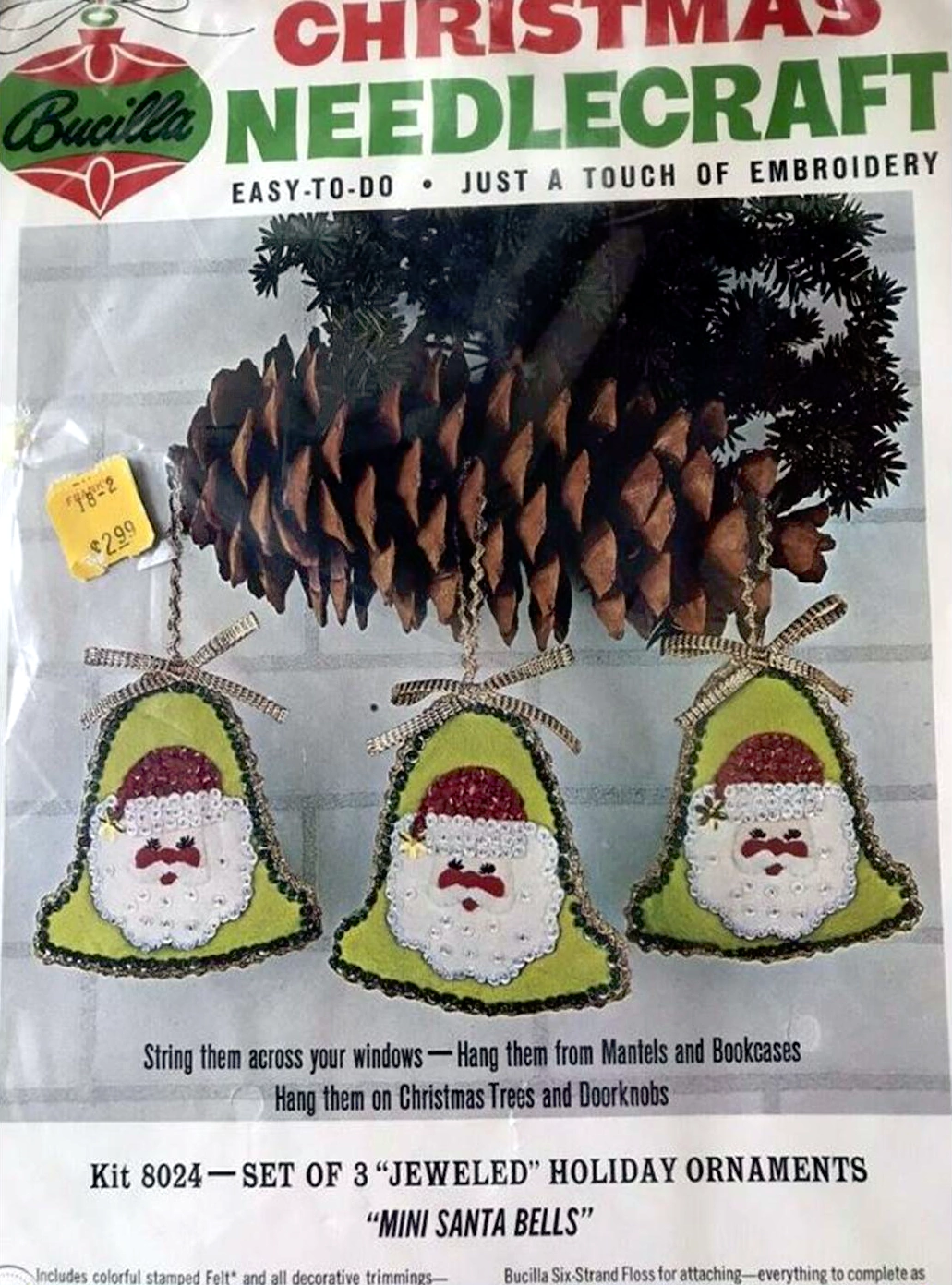 Mini Santa Bells 8024 1970 Felt Ornament Kit