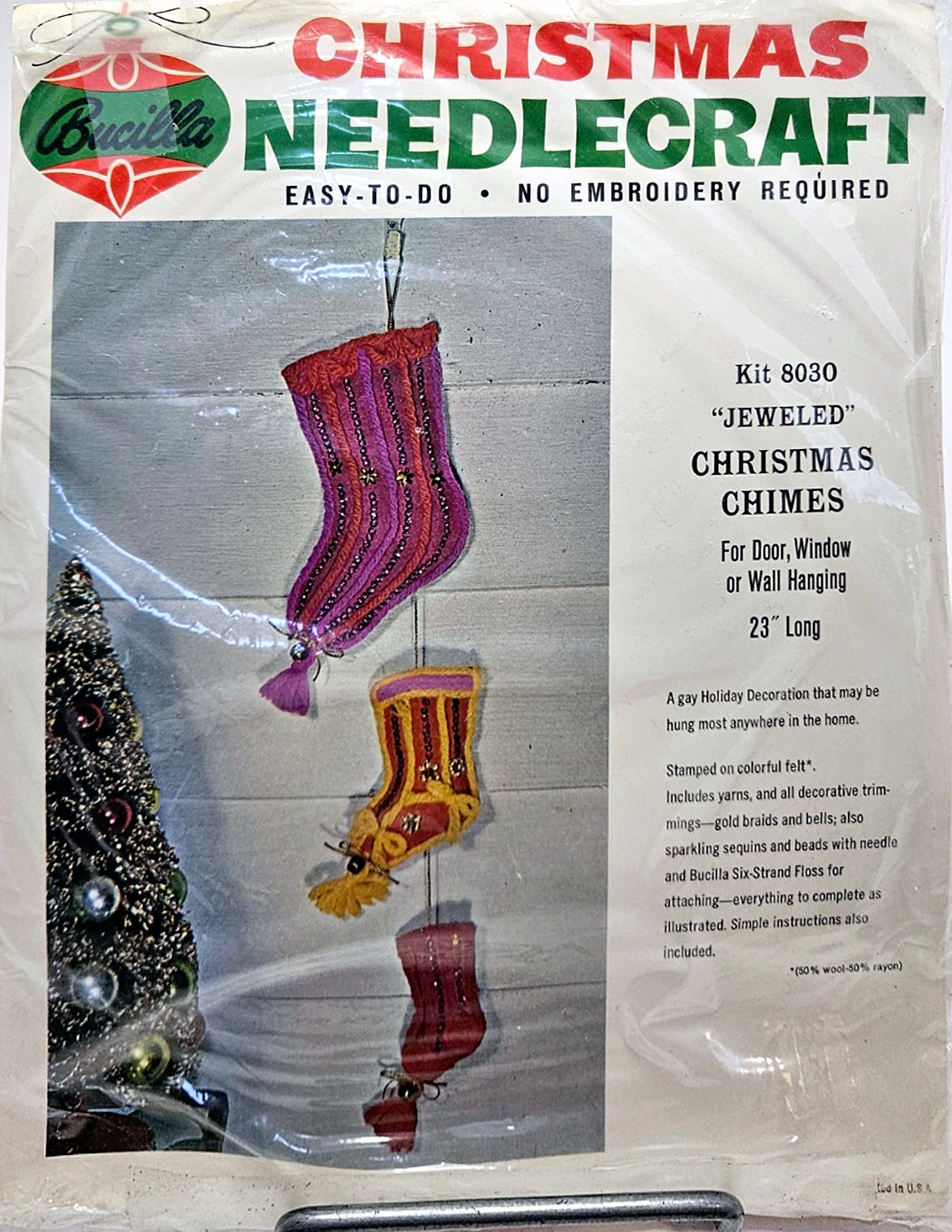 Jeweled Christmas Chimes (stocking) 8030 1970 Felt Wall Hanging