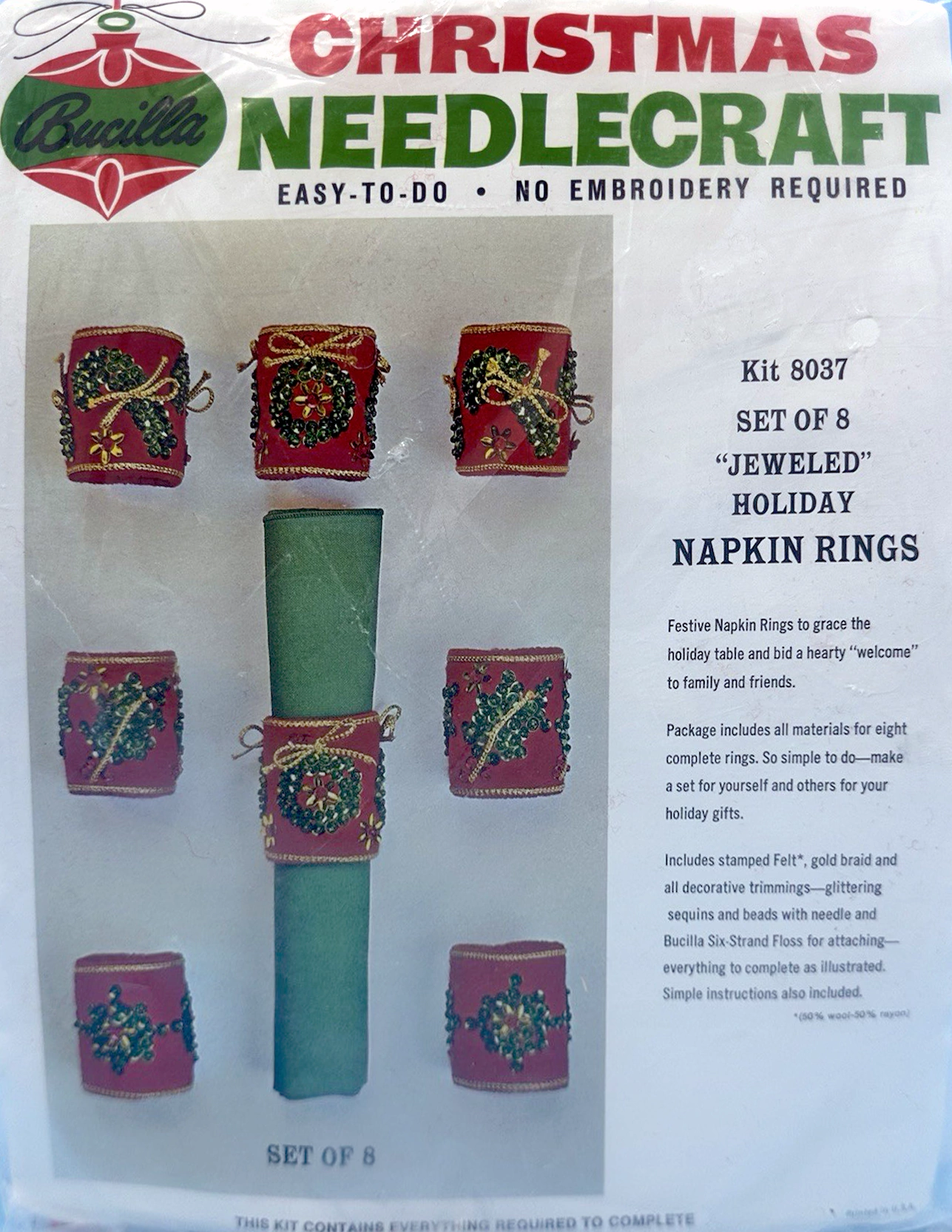 Jeweled Holiday napkin rings 8037 1970 Felt Table-wear