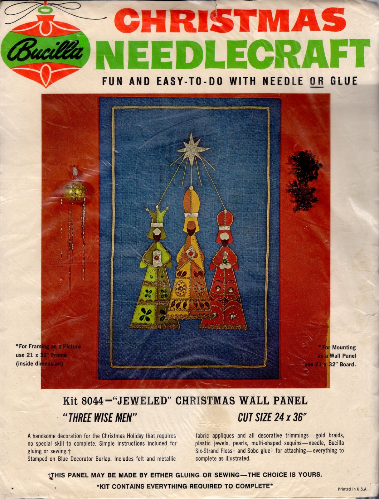 “Three Wisemen” 8044  1970 Wall panel printed on decorator burlap. Can be made by gluing or sewing.