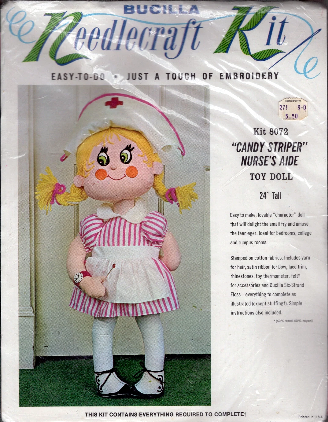 “Candy Striper” Nurse’s Aide Toy Doll 8072 1970 24″ tall