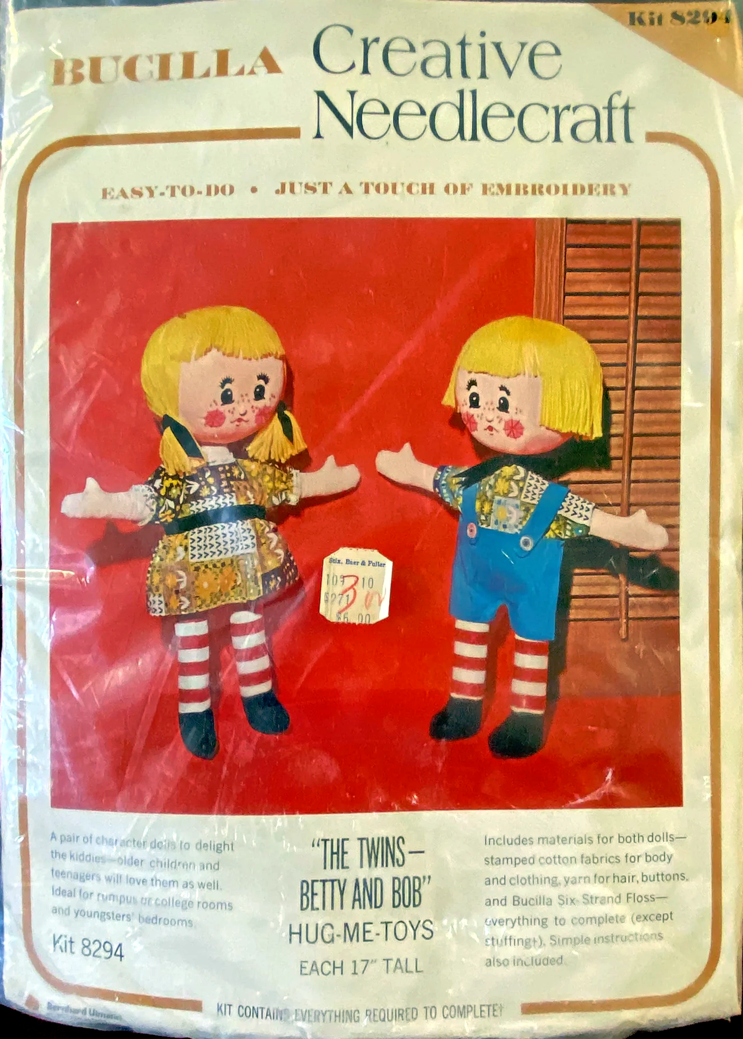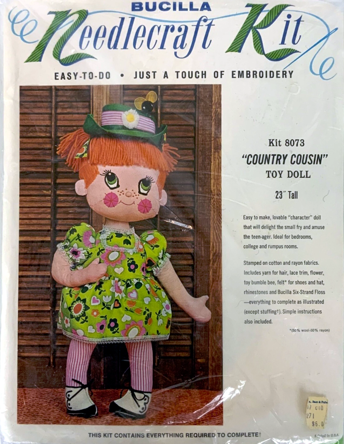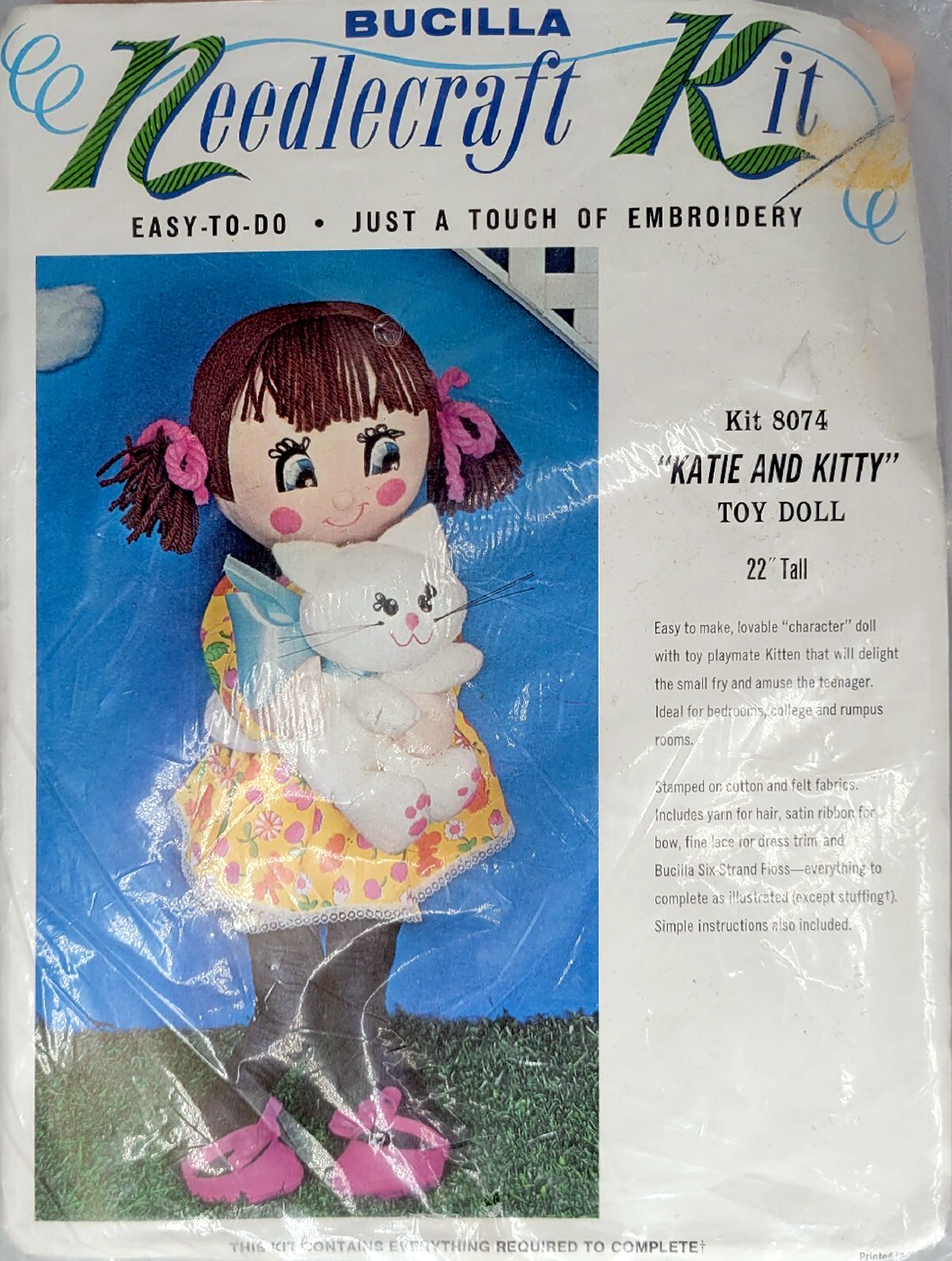 (65% POLYESTER, 35% CELLULOSE). KIT CONTAINS ALL DECORATIVE TRIMMINGS, NEEDLE AND EASY-TO-FOLLOW INSTRUCTIONS.