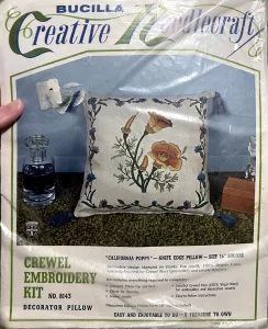 California Poppy Knife Edge Pillow 8143 Crewel Embroidery Kit