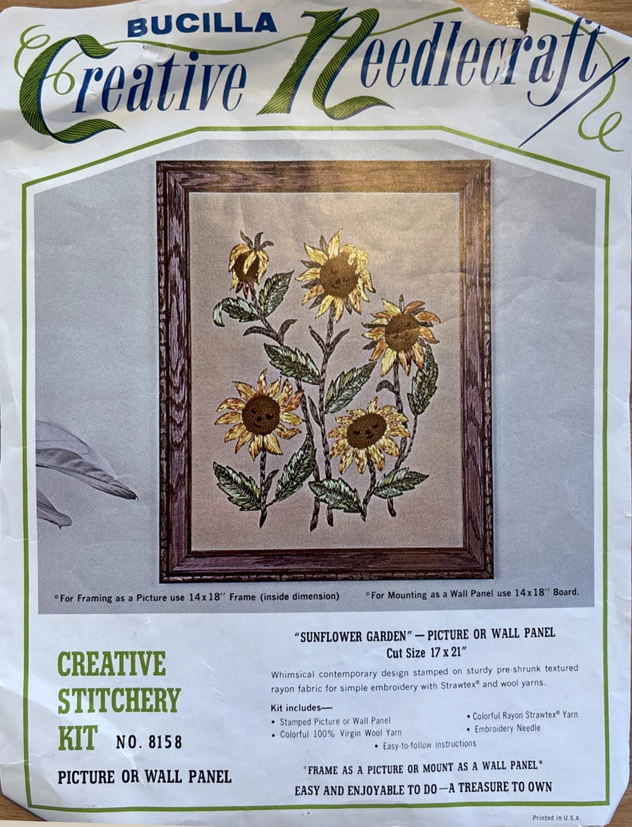 Sunflower Garden 8158 Crewel Embroidery Picture or Wall Hanging