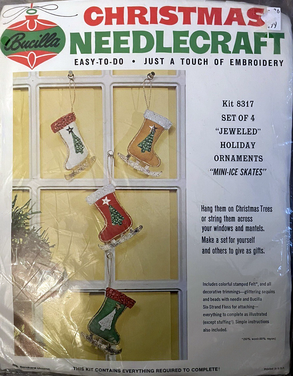 These kits have a lot in common with the ones on this page. They have covers similar to 1979 and do not have color separated sequins, and still include wool-blend felt. Information about these kits has moved to the 4xxxx kits page.