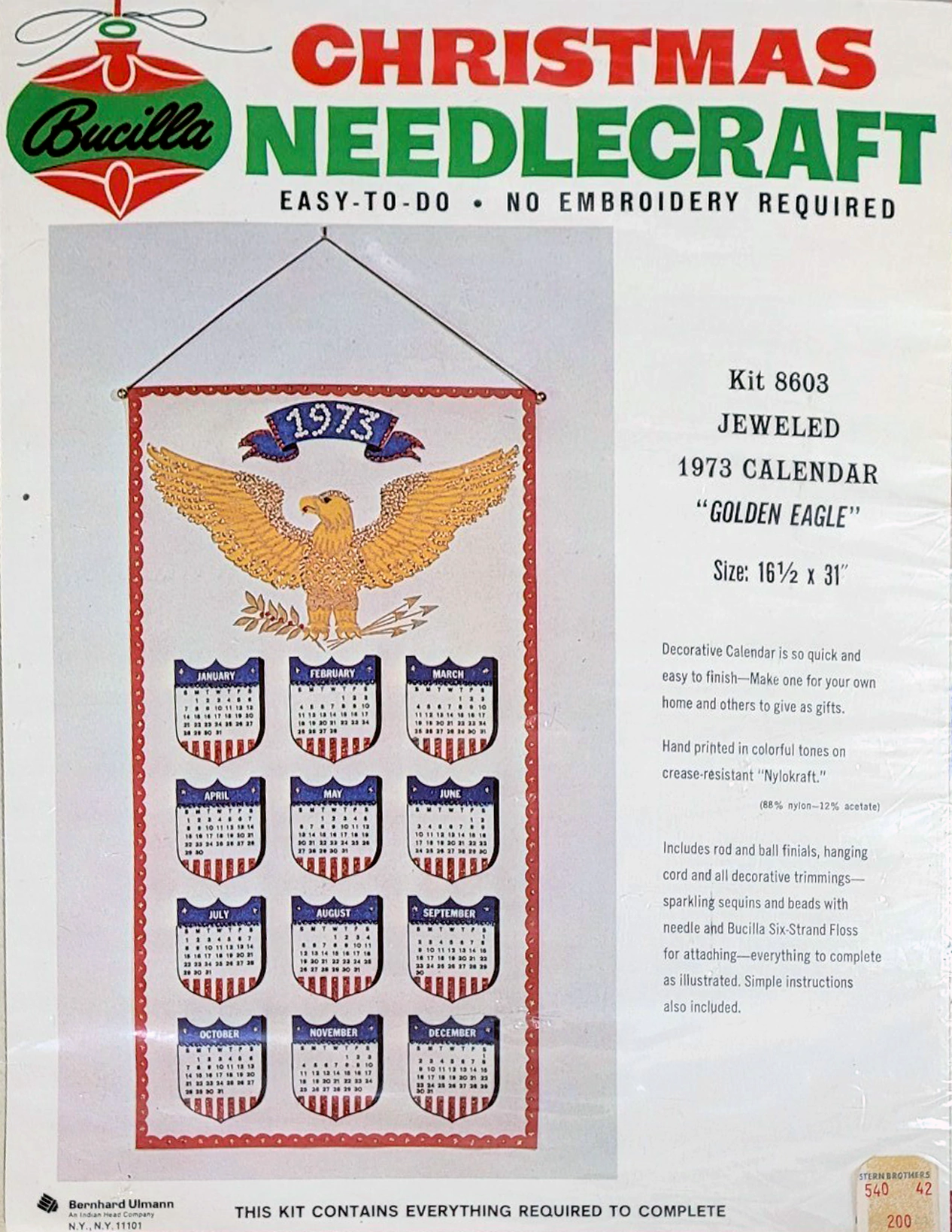 Homecoming 8001 1970 31″ Felt Jeweled Calendar.